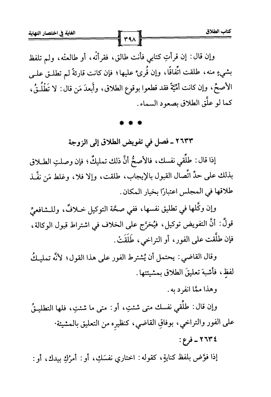 2633 - فصل في تفويض الطلاق إلى الزوجة