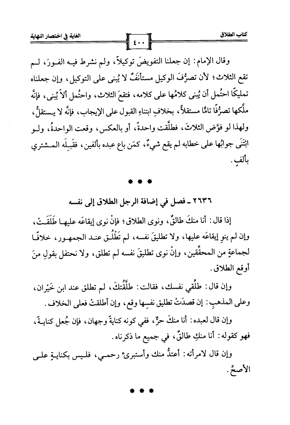 2636 - فصل في إضافة الرجل الطلاق إلى نفسه