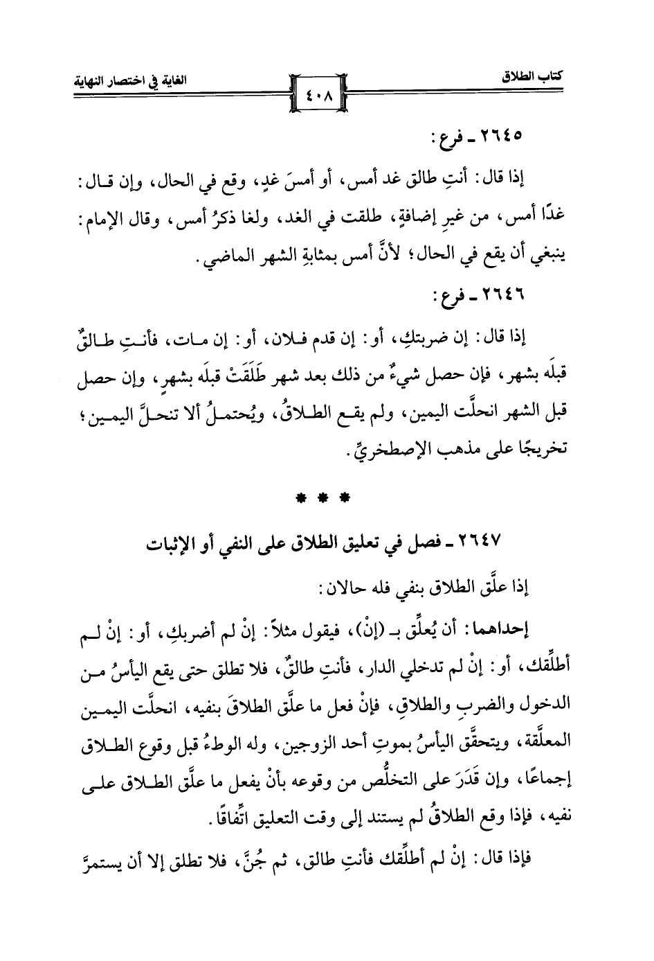 2647 - فصل في تعليق الطلاق على النفي أو الإثبات