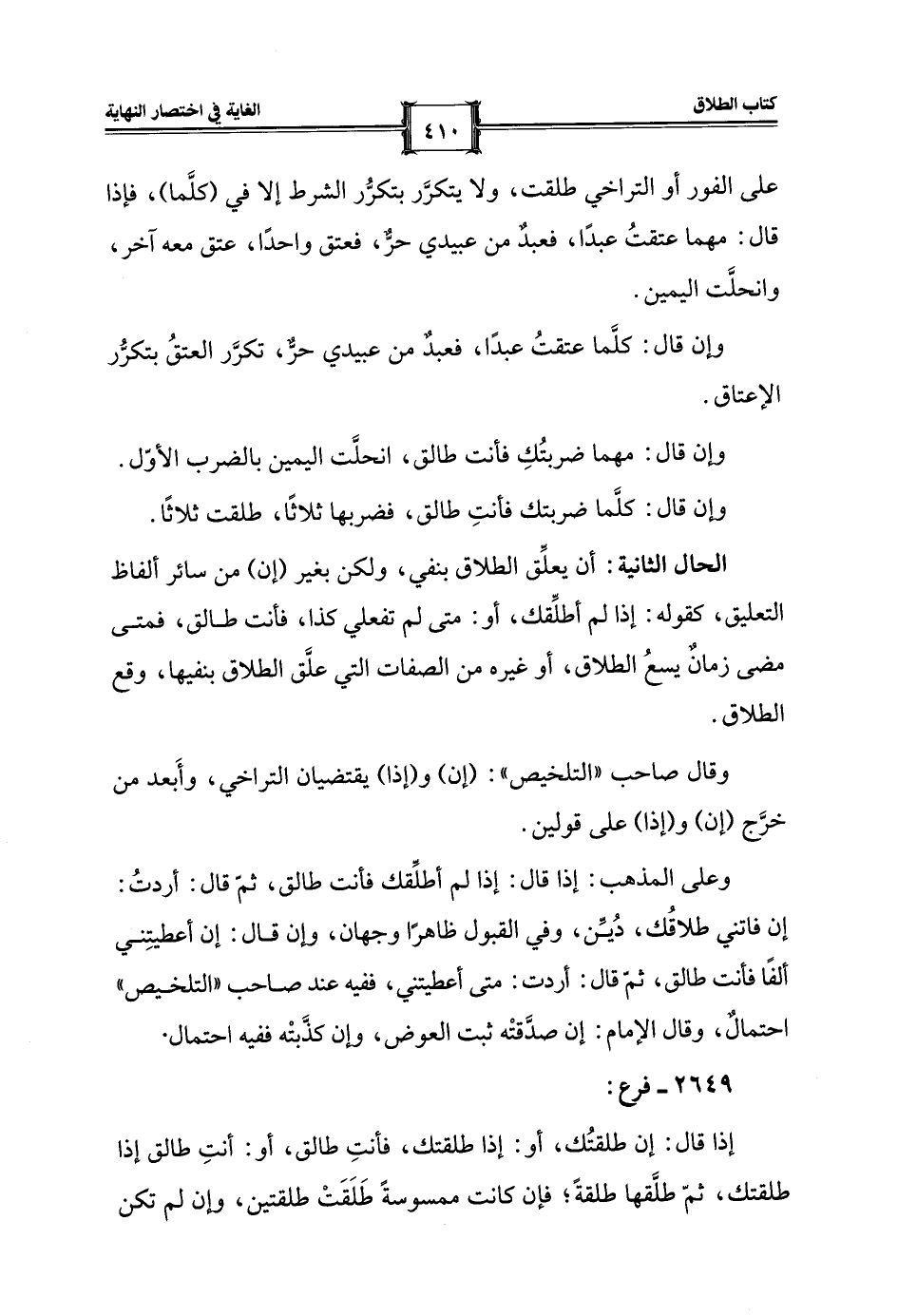 على الفور أو التراخي طلقت، ولا يتكرَّر بتكرُّر الشرط إلا في (كلَّما)، فإذا قال: مهما عتقتُ عبدًا، فعبدٌ من عبيدي حرٌّ، فعتق واحدًا، عتق معه آخر، وانحلَّت اليمين.