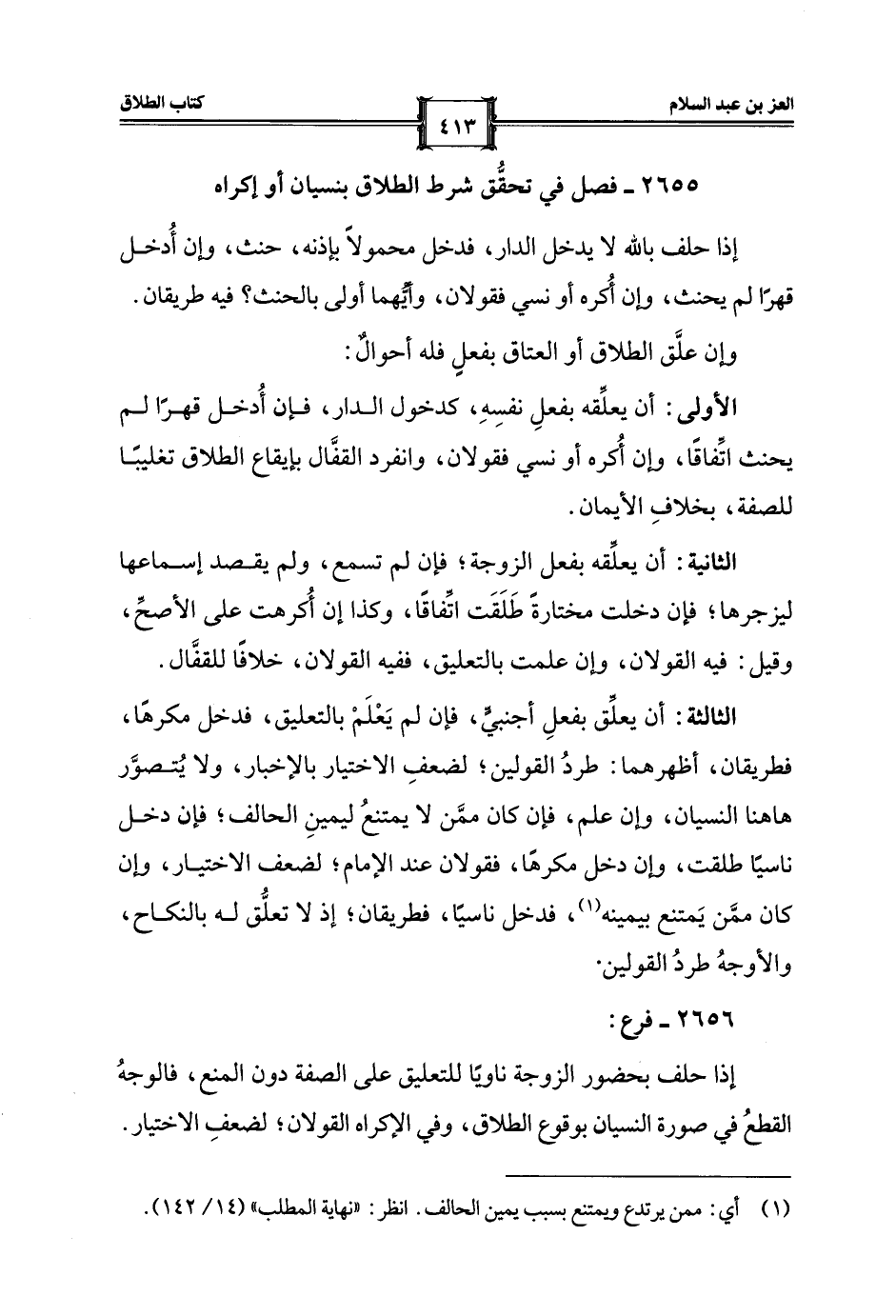 2655 - فصل في تحقُّق شرط الطلاق بنسيان أو إكراه