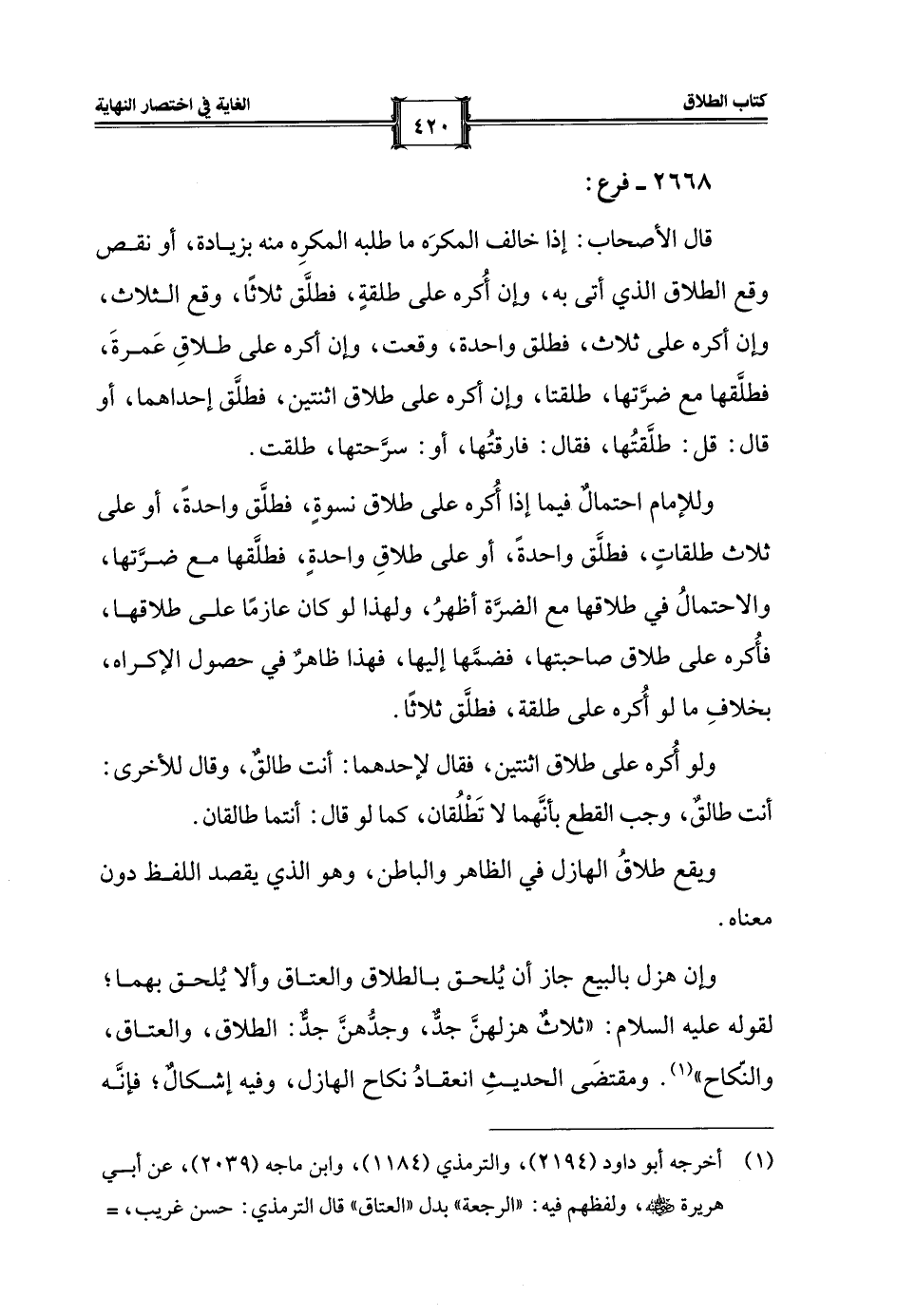 (¬1) أخرجه أبو داود (2194)، والترمذي (1184)، وابن ماجه (2039)، عن أبي هريرة - رضي الله عنه -، ولفظهم فيه: "الرجعة" بدل "العتاق" قال الترمذي: حسن غريب، =