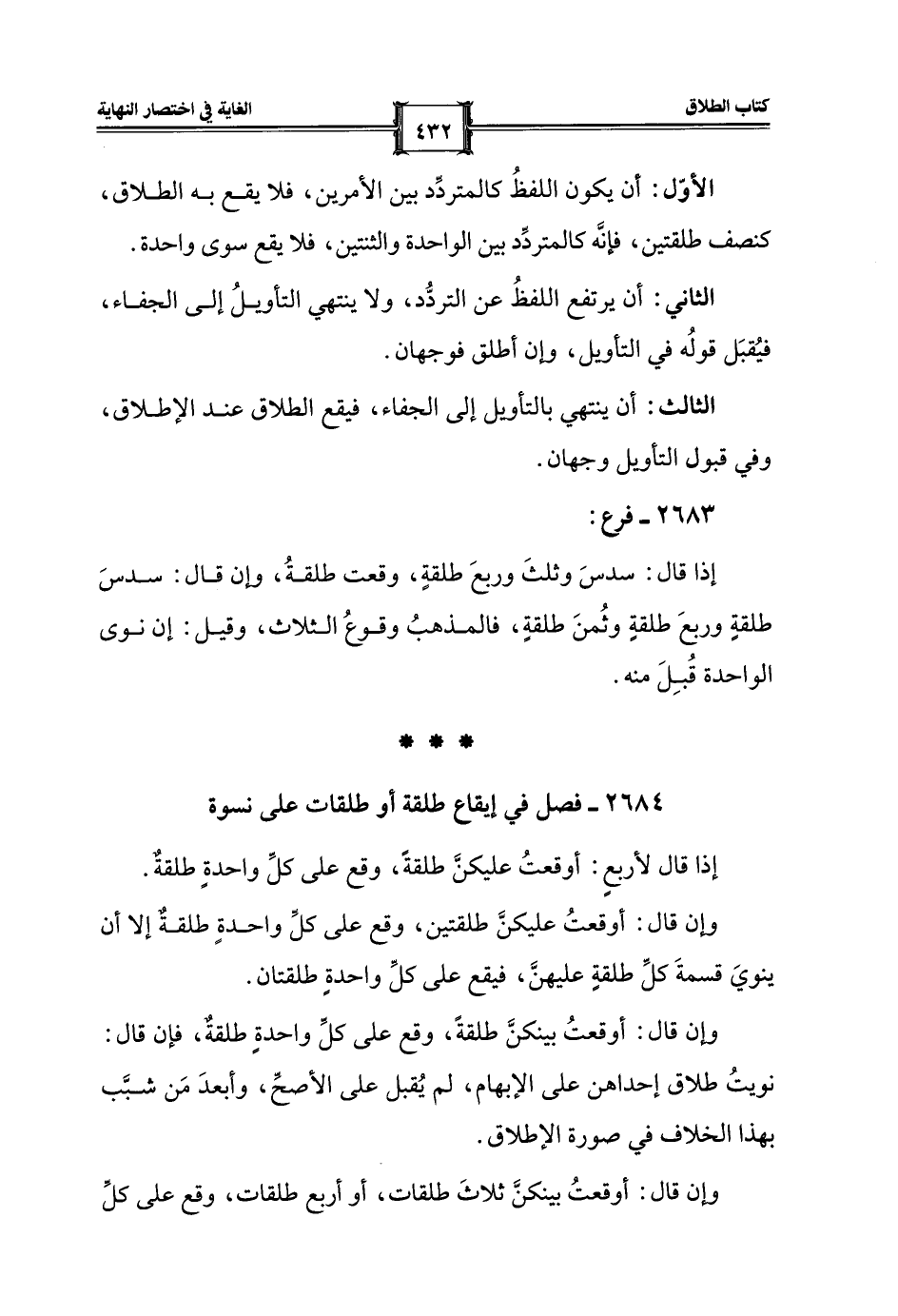 2684 - فصل في إيقاع طلقة أو طلقات على نسوة