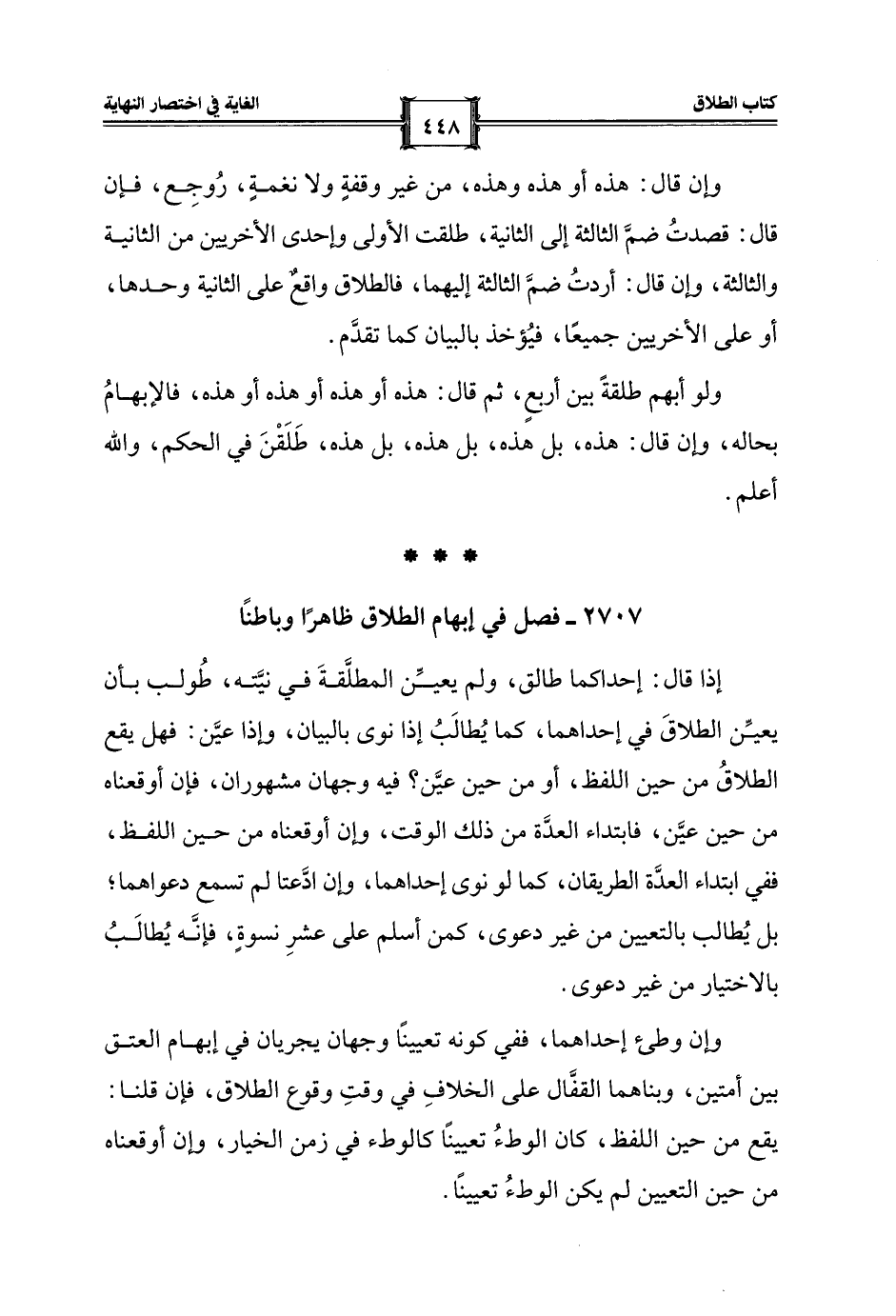 2707 - فصل في إبهام الطلاق ظاهرًا وباطنًا