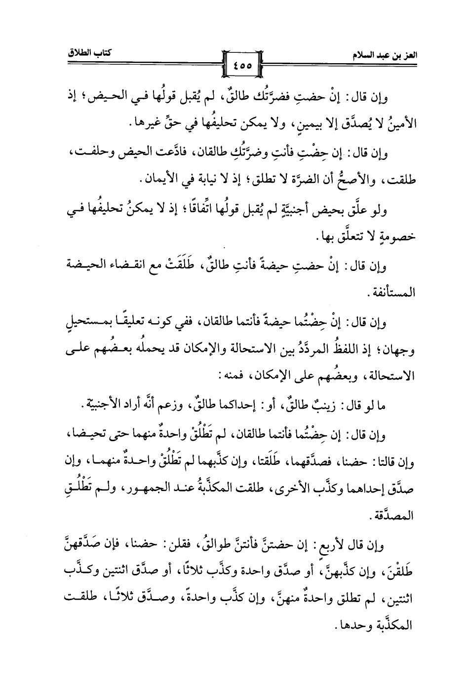 وإِن قال لأربعٍ: إن حضتنَّ فأنتن طوالقُ، فقلن: حضنا، فإن صَدَّقهنَّ طَلقْنَ، وإِن كذَّبهنَّ، أو صدَّق واحدة وكذَّب ثلاثًا، أو صدَّق اثنتين وكذَّب اثنتين، لم تطلق واحدةٌ منهنَّ، وإِن كذَّب واحدةً، وصدَّق ثلاثًا، طلقت المكذَّبة وحدها.