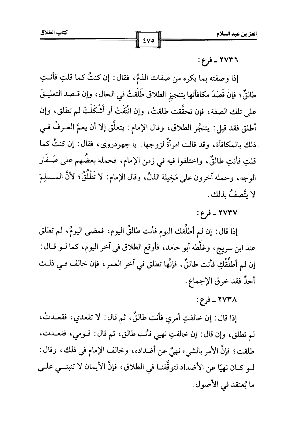 إذا قال: إن خالفتِ أمري فأنت طالقٌ، ثم قال: لا تقعدي، فقعدتْ، لم تطلق، وإِن قال: إن خالفتِ نهيي فأنت طالق، ثم قال: قومي، فقعدت، طلقت؛ فإنَّ الأمر بالشيء نهيٌ عن أضداده، وخالف الإمام في ذلك، وقال: لو كان نهيًا عن الأضداد لتوقَّقنا في الطلاق، فإنَّ الأيمان لا تنبني على ما يُعتقد في الأصول.