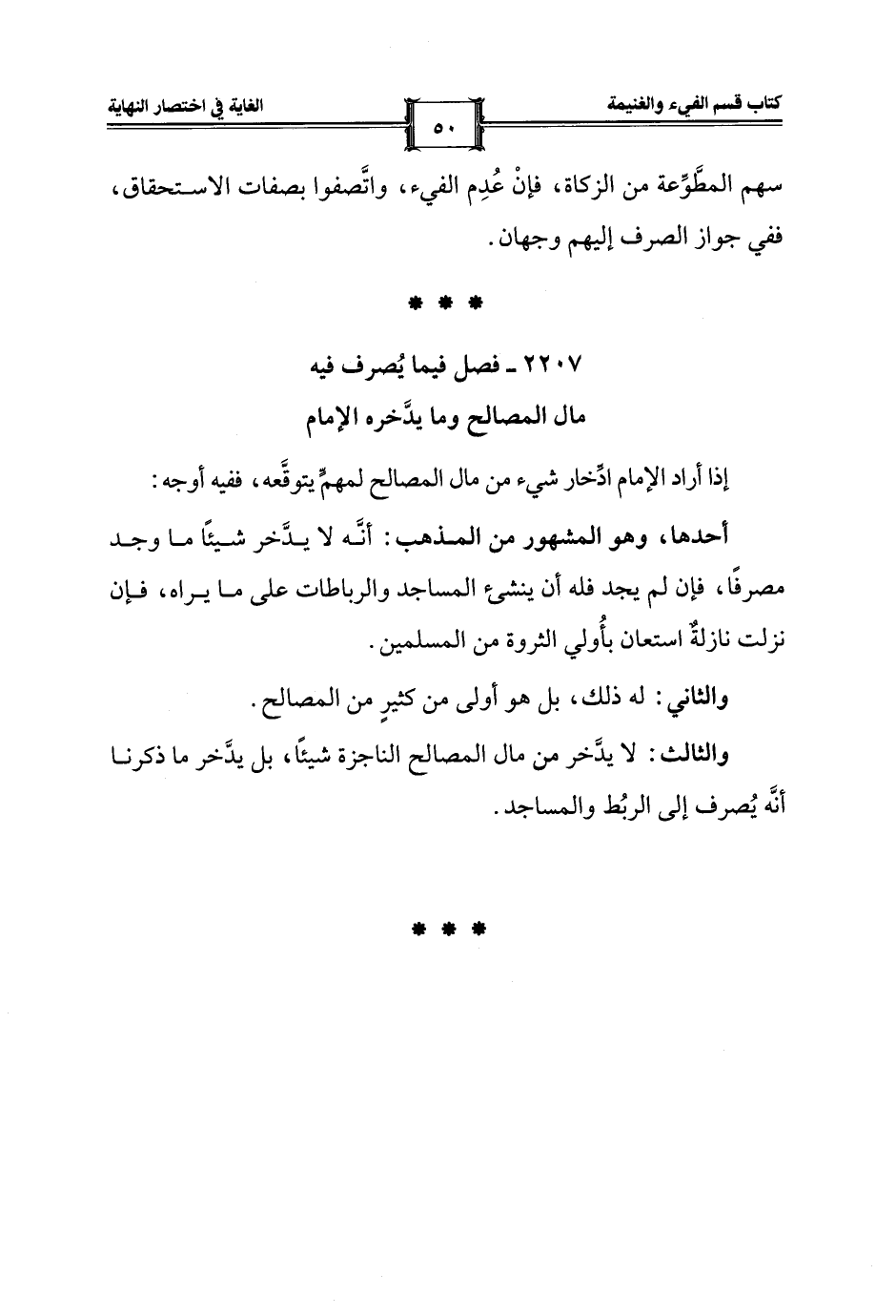 2207 - فصل فيما يُصرف فيه مال المصالح وما يدَّخره الإمام