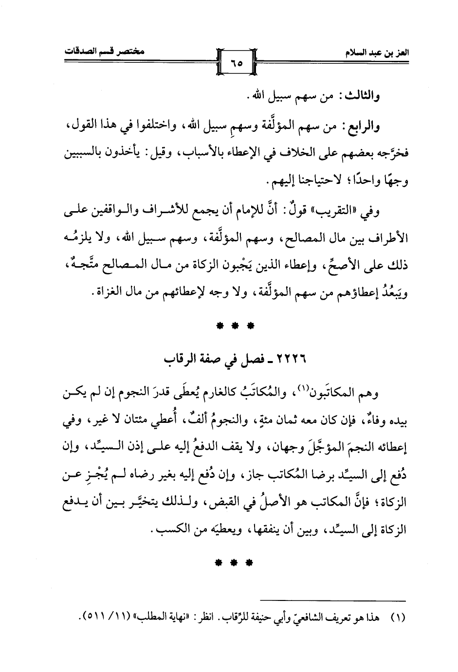 (¬1) هذا هو تعريف الشافعيّ وأبي حنيفة للرِّقاب. انظر: "نهاية المطلب" (11/ 511).