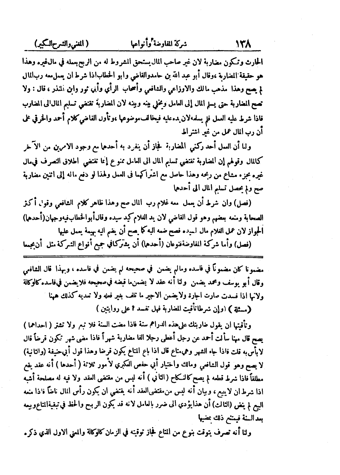 مضموناً كان مضموناً في فاسده وما لم يضمن في صحيحه لم يضمن في فاسده، وبهذا قال الشافعي وقال أبو يوسف ومحمد يضمن ولنا أنه عقد لا يضمن ما قبضه في صحيحه فلا يضمن في فاسده كالو كالة ولأنها إذا فسدت صارت إجارة ولا يضمن الأجير ما تلف بغير فعله ولا تعديه كذلك ههنا (مسألة) (وإن شرطا تأقيت المضاربة فهل تفسدء على روايتين) وتأقيتها أن يقول ضاربتك على هذه الدراهم سنة فإذا مضت السنة فلا تبع ولا تشتر (إحداهما) يصح قال منها سألت أحمد عن رجل أعطى رجلاً ألفاً مضاربة شهراً فإذا مضى شهر تكون قرضاً قال لا بأس به قلت فإذا جاء الشهر وهي متاع قال إذا باع المتاع يكون قرضاً وهذا قول أبي حنيفة (والثانية)