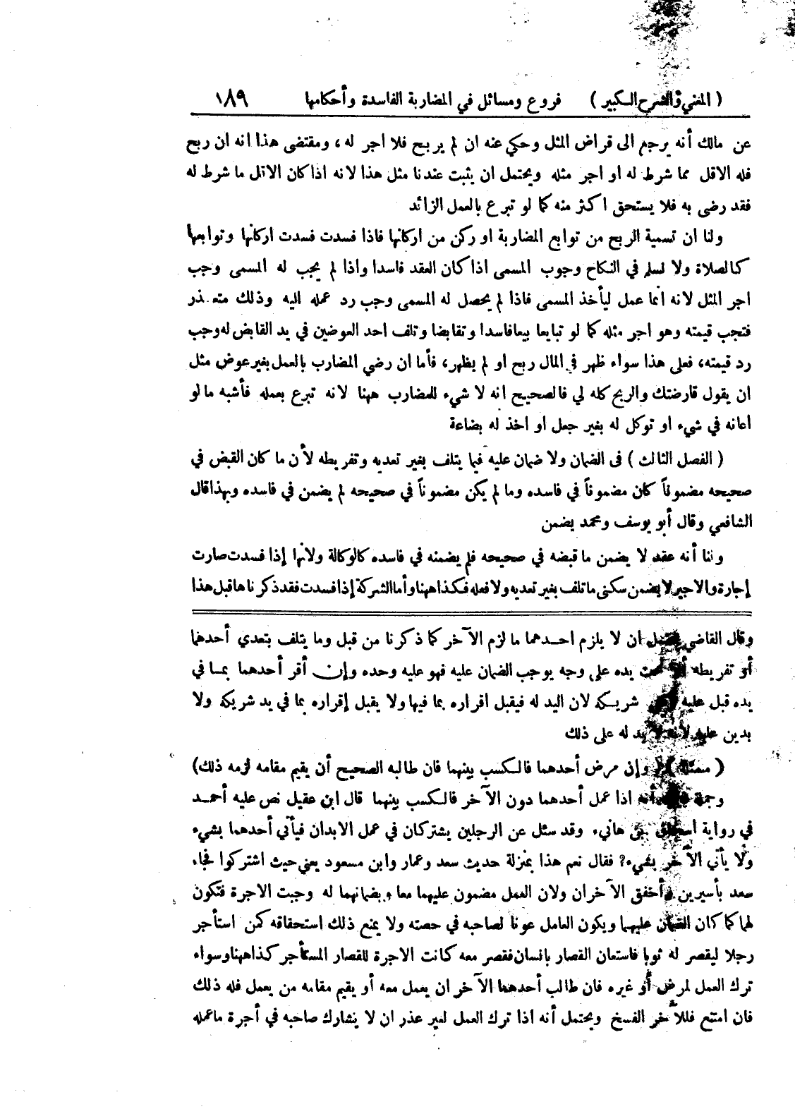 وقال القاضي يحتمل أن لا يلزم أحدهما ما لزم الآخر كما ذكرنا من قبل وما يتلف بتعدي أحدهما أو تفريطه أو تحت يده على وجه يوجب الضمان عليه فهو عليه وحده وإن أقر أحدهما بما في يده قبل عليه وعلى شريكه لان اليد له فيقبل إقراره بما فيها ولا يقبل إقراره بما في يد شريكه ولا بدين عليه لان لا يدله على ذلك (مسألة) (وإن مرض أحدهما فالكسب بينهما فإن طالبه الصحيح أن يقيم مقامه لزمه ذلك) وجملة ذلك أنه إذا عمل أحدهما دون الآخر فالكسب بينهما قال ابن عقيل نص عليه أحمد في رواية إسحاق بن هانئ وقد سئل عن الرجلين يشتركان في عمل الأبدان فيأتي أحدهما بشئ ولا يأتي الآخر بشئ؟ فقال نعم هذا بمنزلة حديث سعد وعمار وابن مسعود يعني حيث اشتركوا فجاء سعد بأسيرين وأخفق الآخران ولا ن العمل مضمون عليهما معاً وبضمانهما له وجبت الأجرة فتكون لهما كما كان الضمان عليهما ويكون العامل عونا لصاحبه في حصته ولا يمنع ذلك استحقاقه كم استأجر رجلاً ليقصر له ثوباً فاستعان القاصر بإنسان فقصر معه كانت الأجرة للقصار المستأجر كذاههنا وسواء ترك العمل لمرض أو غيره فإن طالب أحدهما الآخران يعمل معه أو يقيم مقامه من يعمل فله ذلك فإن امتنع فللآخر الفسخ ويحتمل أنه إذا ترك العمل لغير عذر أن لا يشارك صاحبه في أجرة ما عمله