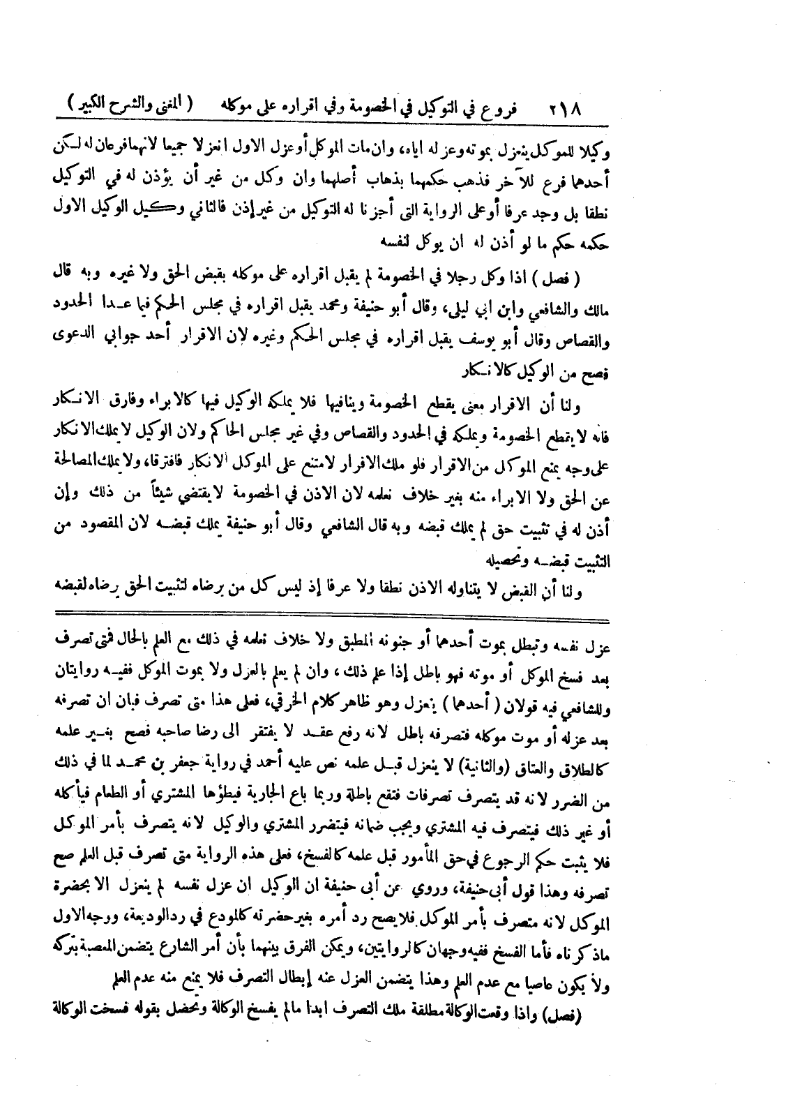 عزل نفسه وتبطل بموت أحدهما أو جنونه فلمطبق ولا خلاف نعلمه في ذلك مع العلم بالحال فمتى تصرف بعد فسخ الموكل أو موته فهو باطل إذا علم ذلك، وإن لم يعلم بالعزل ولا يموت الموكل ففيه روايتان وللشافعي فيه قولان (أحدهما) ينعزل وهو ظاهر كلام الخرقي، فعلى هذا متى تصرف فبان أن تصرفه بعد عزله أو موت موكله فتصرفه باطل لأنه رفع عقد لا يفتقر إلى رضا صاحبه فصح بغير عمله كالطلاق والعتاق (والثانية) لا ينعزل قبل علمه نص عليه أحمد في رواية جعفر بن محمد لما في ذلك من الضرر لأنه قد يتصرف تصرفات فتقع باطلة وربما باع الجارية فيطؤها المشتري أو الطعام فيأكله أو غير ذلك فيتصرف فيه المشتري ويجب ضمانه فيتضرر المشتري والوكيل لأنه يتصرف بأمر الموكل فلا يثبت حكم الرجوع في حق المأمور قبل علمه كالفسخ، فعلى هذه الرواية متى تصرف قبل العلم صح
