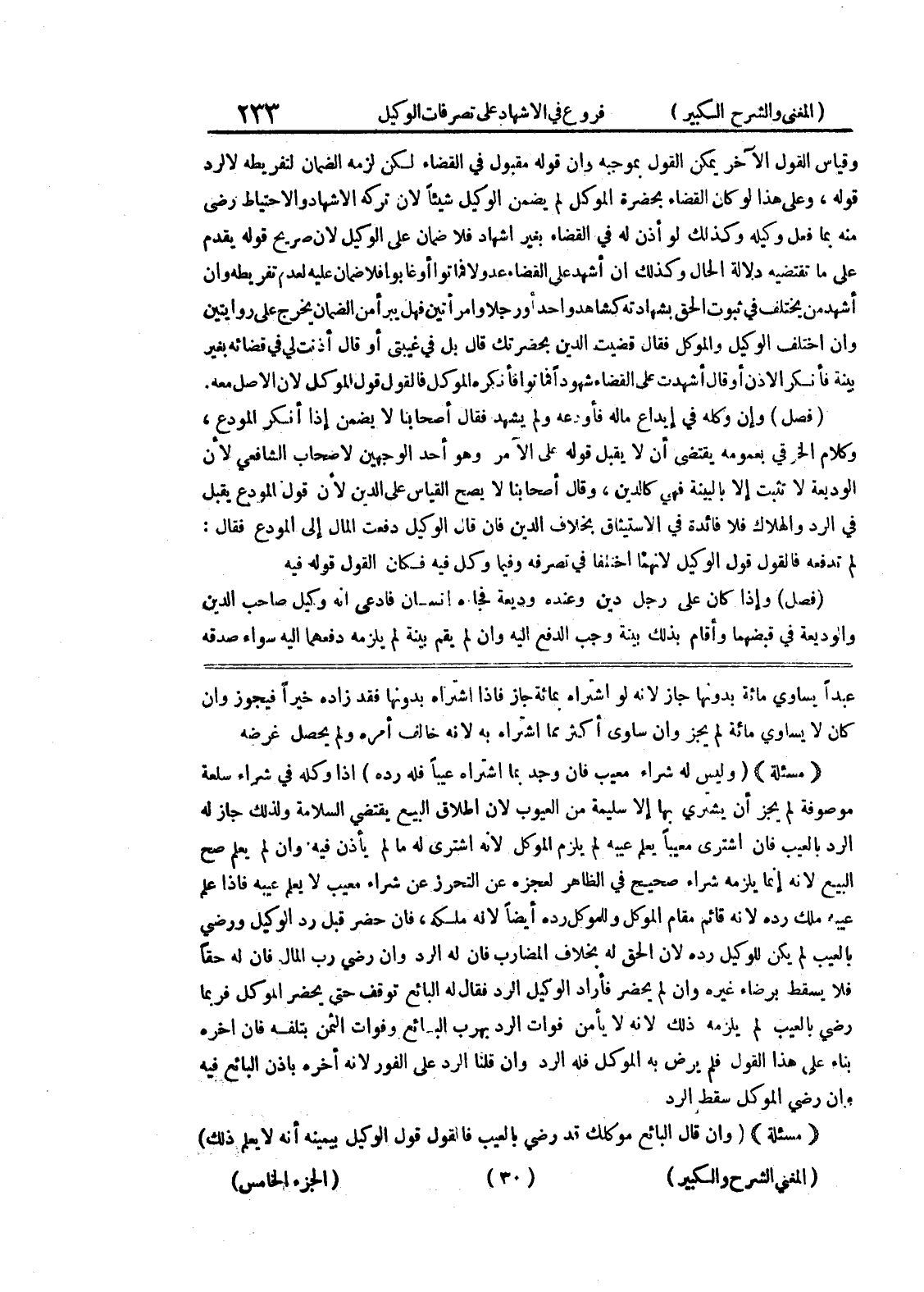 عبداً يساوي مائة بدونها جاز لأنه لو اشتراه بمائة جاز فإذا اشتراه بدونها فقد زاده خيراً فيجوز وإن كان لا يساوي مائة لم يجز وإن ساوى أكثر مما اشتراء به لأنه خالف أمره ولم يحصل غرضه (مسألة) (وليس له شراء معيب فإن وجد بما اشتراه عيباً فله رده) إذا وكله في شراء سلعة موصوفة لم يجز أن يشتري بها إلا سليمة العيوب لأن إطلاق البيع يقتضي السلامة ولذلك جاز له الرد بالعيب فإن اشترى معيباً يعلم عيبه لم يلزم الموكل لأنه اشترى له ما لم يأذن فيه وإن لم يعلم صح البيع لأنه إنما يلزمه شراء صحيح في الظاهر لعجزه عن التحرز عن شراء معيب لا يعلم عيبه فإذا علم عيبه ملك رده لأنه قائم مقام الموكل وللموكل رده أيضاً لأنه ملكه، فإن حضر قبل رد الوكيل ورضي بالعيب لم يكن للوكيل رده لأن الحق له بخلاف المضارب فإن له الرد وإن رضي رب المال فأن له حقاً فلا يسقط برضاء غيره وإن لم يحضر فأراد الوكيل الرد فقال له البائع توقف حتى يحضر الموكل فربما رضي بالعيب لم يلزمه ذلك لأنه لا يأمن فوات الرد بهرب البائع وفوات الثمن بتلفه فإن أخره بناء على هذا القول فلم يرض به الموكل فله الرد وإن قلنا الرد على الفور لأنه أخره بإذن البائع فيه وإن رضي الموكل سقط الرد (مسألة) (وإن قال البائع موكلك قد رضي بالعيب فالقول قول الوكيل بيمينه أنه لا يعلم ذلك)