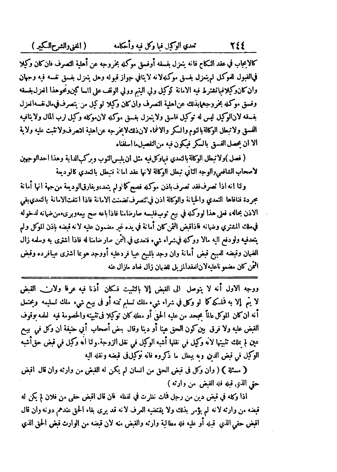 ووجه الأول أنه لا يتوصل الى القبض إلا بالتثبيت فكان إذنا فيه عرفا ولأن القبض لا يتم إلا به فملكه كما لو وكل في شراء شئ ملك تسليم ثمنه أو في بيع شئ ملك تسليمه ويحتمل أنه إن كان الموكل عالماً بجحد من عليه الحق أو مطله كان توكيلاً في تثبيته والخصومة فيه لعلمه بوقوف القبض عليه ولا فرق بين كون الحق عينا أو ديناً وقال بعض أصحاب أبي حنيفة أن وكل في بيع عين لم يملك تثبيتها لأنه وكيل في نقلها أشبه الوكيل في نقل الزوجة.