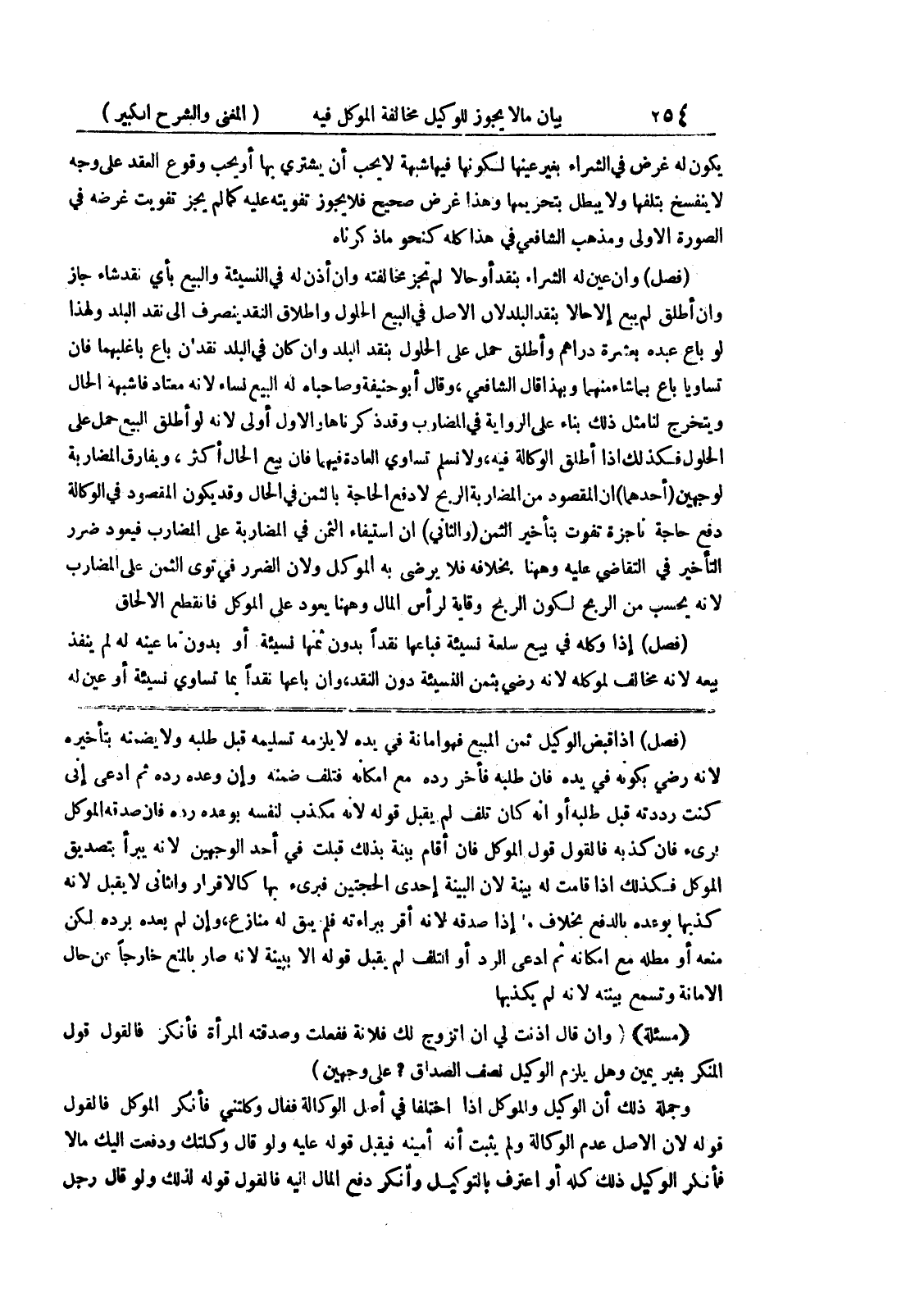 (فصل) إذا قبض الوكيل ثمن المبيع فهو أمانة في يده لا يلزمه تسليمه قبل طلبه ولا يضمنه بتأخيره لأنه رضي بكونه في يده فإن طلبه فأخر رده مع إمكانه فتلف ضمنه وإن وعده رده ثم ادعى إني كنت رددته قبل طلبه أو انه كان تلف لم يقبل قوله لأنه مكذب لنفسه بوعده رده فإن صدقه الموكل برئ فإن كذبه فالقول قول الموكل فإن أقام ببنة بذلك قبلت في أحد الوجهين لأنه يبرأ بتصديق الموكل فكذلك إذا قامت له بينة لأن البينة إحدى الحجتين فبرئ بها كالإقرار والثاني لا يقبل لانه كذبها بوعده بالدفع بخلاف ما إذا صدق لأنه أقر ببراءته فلم يبق له منازع، وإن لم بعده برده لكن منعه أو مطله مع إمكانه ثم ادعى الرد أو التلف لم يقبل قوله إلا بينة لأنه صار بالمنع خارجاً عن حال الأمانة وتسمع بينته لأنه لم يكذبها