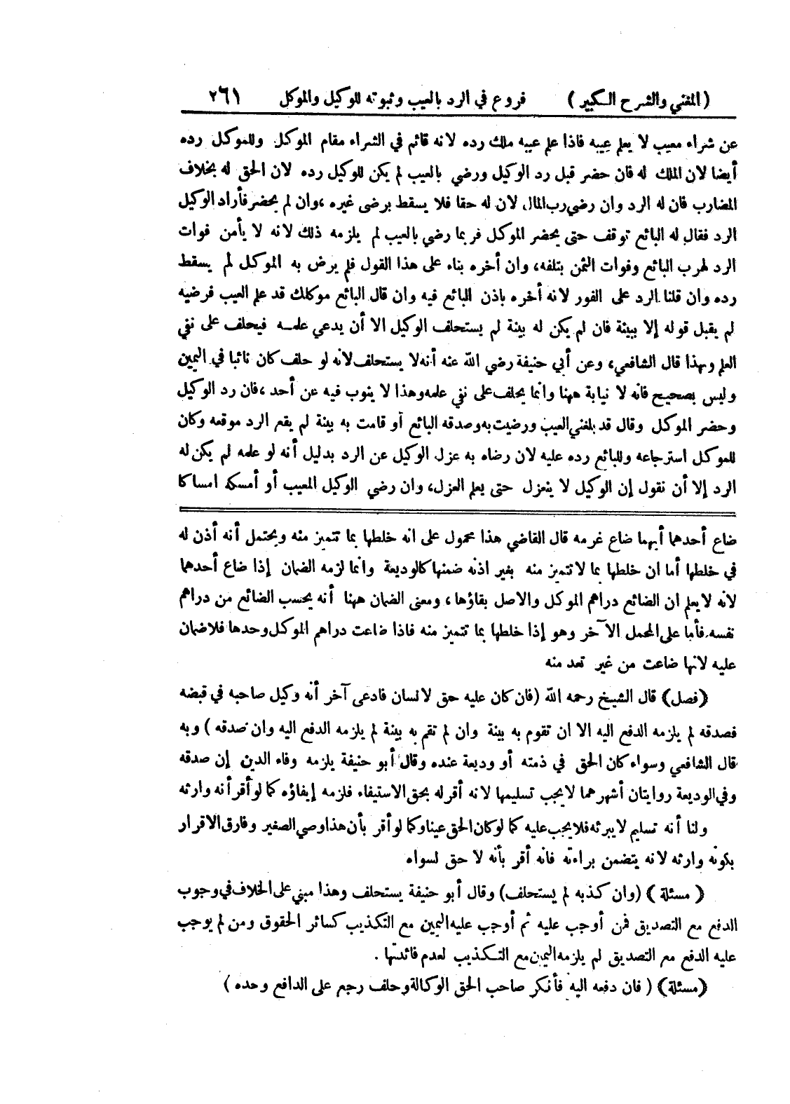 ضاع أحدهما أيهما ضاع غرمه قال القاضي هذا محمول على أنه خلطها بما تتميز منه ويحتمل أنه أذن له في خلطها أما إن خلطها بما لا تتميز منه بغير إذنه ضمنها كالوديعة وإنما لزمه الضمان إذا ضاع أحدهما لأنه لا يعلم أن الضائع دراهم الموكل والأصل بقاؤها، ومعنى الضمان ههنا أنه يحسب الضائع من دراهم نفسه فأما على المحمل الآخر وهو إذا خلطها بما تتميز منه فإذا ضاعت دراهم الموكل وحدها فلاضمان عليه لأنها ضاعت من غير تعد منه (فصل) قال الشيخ رحمه الله (فإن كان عليه حق لإنسان فادعى آخر أنه وكيل صاحبه في قبضه فصدقه لم يلزمه الدفع إليه إلا أن تقوم به بينة وإن لم تقم به بينة لم يلزمه الدفع إليه وإن صدقه) وبه قال الشافعي وسواء كان الحق في ذمته أو وديعة عنده وقال أبو حنيفة يلزمه وفاء الدين إن صدقه وفي الوديعة روايتان أشهر هما لا يجب تسليمها لأنه أقر له بحق الاستيفاء فلزمه إيفاؤه كما لو أقر أنه وارثه ولنا أنه تسليم لا يبرئه فلا يجب عليه كما لو كان الحق عيناً وكما لو أقر بأن هذا وصي الصغير وفارق الاقرار بكونه وارثه لأنه يتضمن براءته فإنه أقر بأنه لا حق لسواه (مسألة) (وإن كذبه لم يستحلف) وقال أبو حنيفة يستحلف وهذا مبني على الخلاف في وجوب الدفع مع التصديق فمن أوجب عليه ثم أوجب عله اليمين مع التكذيب كسائر الحقوق ومن لم يوجب عليه الدفع مع التصديق لم يلزمه اليمين مع التكذيب لعدم فائدتها