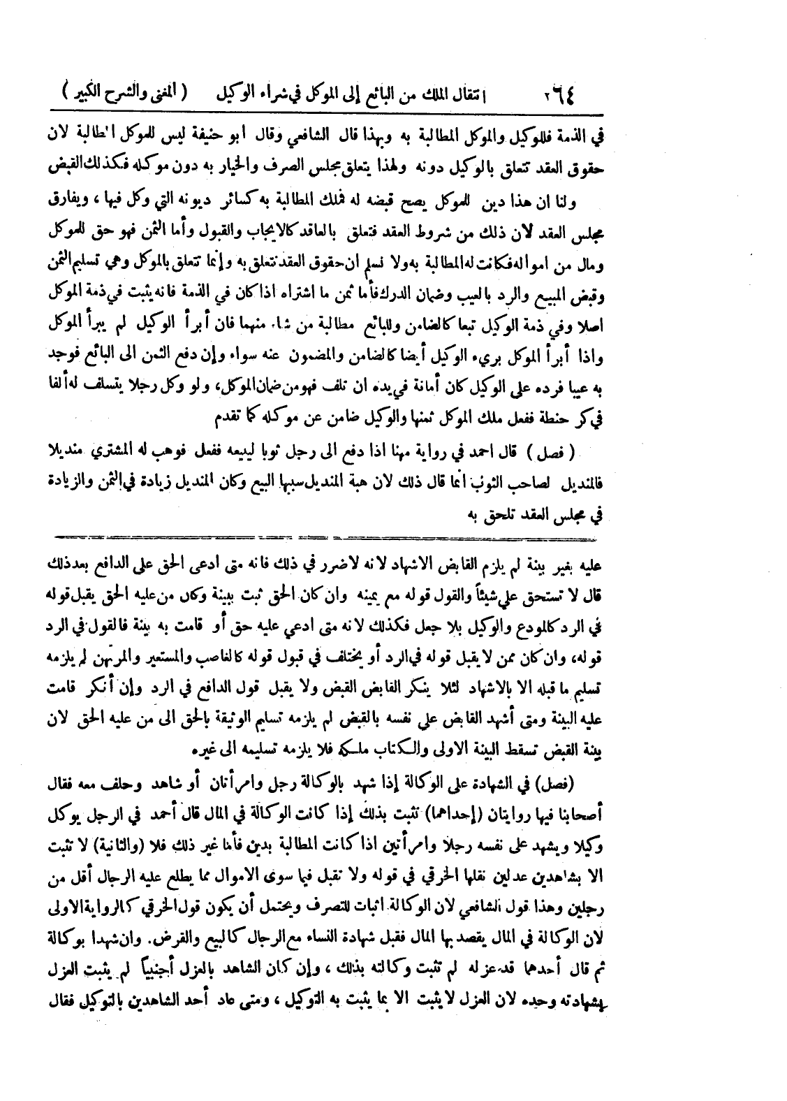 عليه بغير بينة لم يلزم القابض الإشهاد لأنه لا ضرر في ذلك فإنه متى ادعى الحق على الدافع بعد ذلك قال لا تستحق علي شيئاً والقول قوله مع يمينه وإن كان الحق ثبت ببينة وكان من عليه الحق بقبل قوله في الرد كالمودع والوكيل بلا جعل فكذلك لأنه متى ادعى عليه حق أو قامت به بينة فالقول في الرد قوله، وإن كان ممن لا يقبل قوله في الرد أو يختلف في قبول قوله كالغاصب والمستعير والمرتهن لم يلزمه تسليم ما قبله إلا بالإشهاد لئلا ينكر القابض القبض ولا يقبل قول الدافع في الرد وإن أنكر قامت عليه البينة ومتى أشهد القابض على نفسه بالقبض لم يلزمه تسليم الوثيقة بالحق إلى من عليه الحق لأن بينة القبض تسقط البينة الأولى والكتاب ملكه فلا يلزمه تسليمه إلى غيره (فصل) في الشهادة على الوكالة إذا شهد بالوكالة رجل وامرأتان أو شاهد وحلف معه فقال