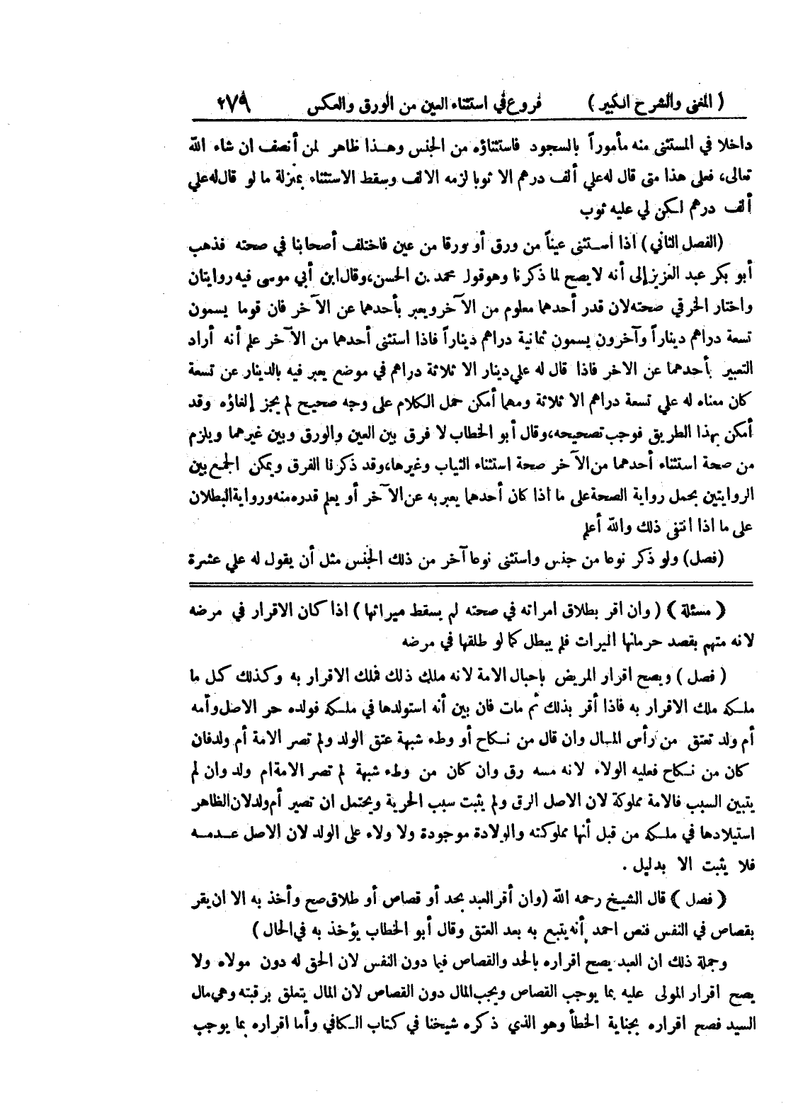 (فصل) قال الشيخ رحمه الله (وإن أقر العبد بحد أو قصاص أو طلاق صح وأخذ به إلا أن يقر بقصاص في النفس فنص أحمد أنه يتبع به عبد العتق وقال أبو الخطاب يؤخذ به في الحال) وجملة ذلك أن العبد يصح إقراره بالحد والقصاص فيما دون النفس لأن الحق له دون مولاه ولا يصح إقرار المولى عليه بما يوجب القصاص ويجب المال دون القصاص لأن المال يتعلق برقبته وهي مال السيد فصح إقراره بجناية الخطأ وهو الذي ذكره شيخنا في كتاب الكافي وأما إقراره بما يوجب