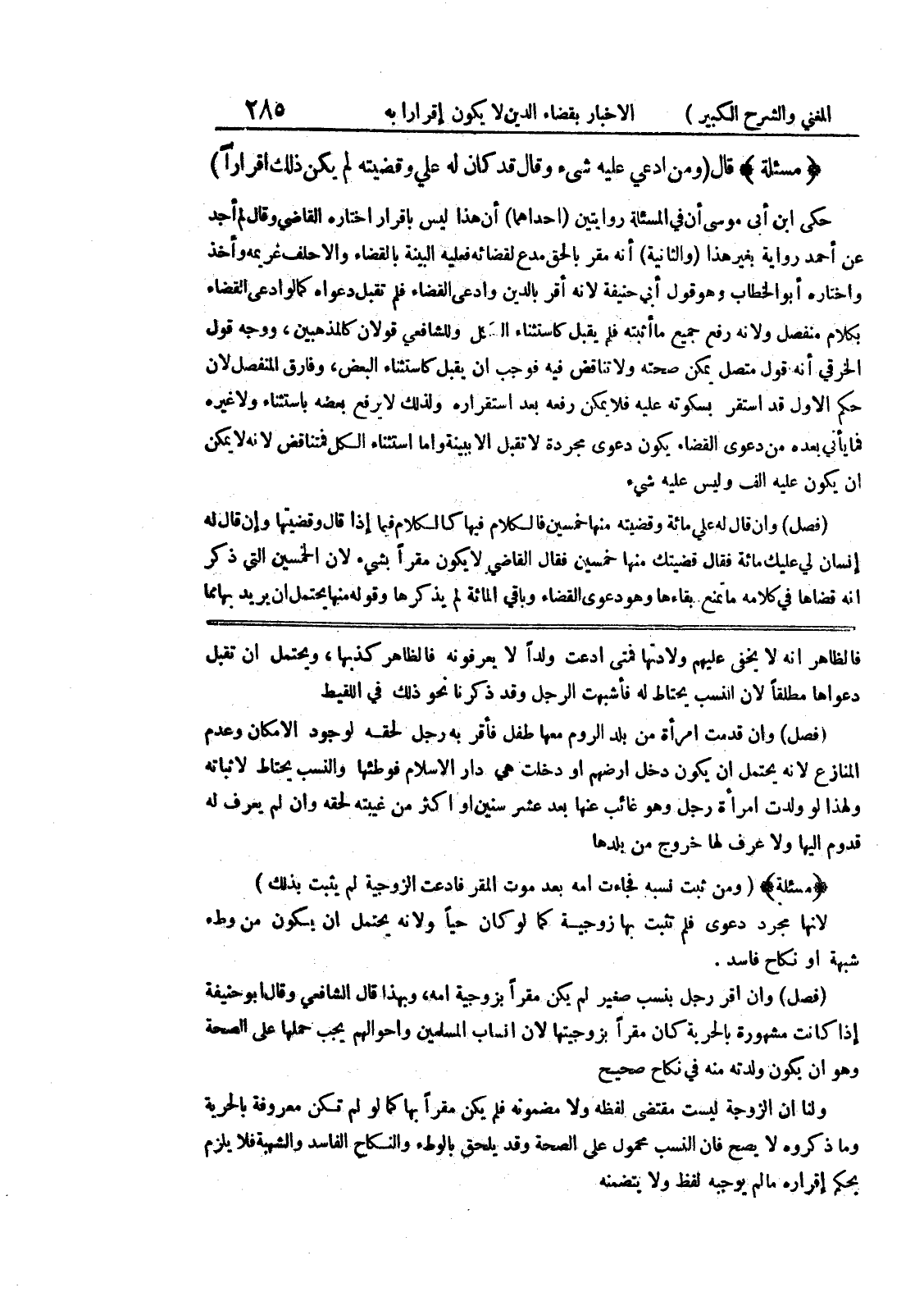فالظاهر أنه لا يخفى عليهمو ولادتها فمتى ادعت ولداً لا يعرفونه فالظاهر كذبها، ويحتمل أن تقبل دعواها مطلقاً لأن النسب يحتاط له فأشبهت الرجل وقد ذكرنا نحو ذلك في اللقيط (فصل) وإن قدمت امرأة من بلد الروم معها طفل فأقر به رجل لحقه لوجود الإمكان وعدم المنازع لأنه يحتمل أن يكون دخل أرضهم أو دخلت هي دار الإسلام فوطئها والنسب يحتاط لا ثباته ولهذا لو ولدت امرأة رجل وهو غائب عنها بعد عشر سنين أو أكثر من غيبته لحقه وإن لم يعرف له قدوم إليها ولا عرف لها خروج من بلدها (مسألة) (ومن ثبت نسبه فجاءت أمه بعد موت المقر فادعت الزوجية لم يثبت بذلك)