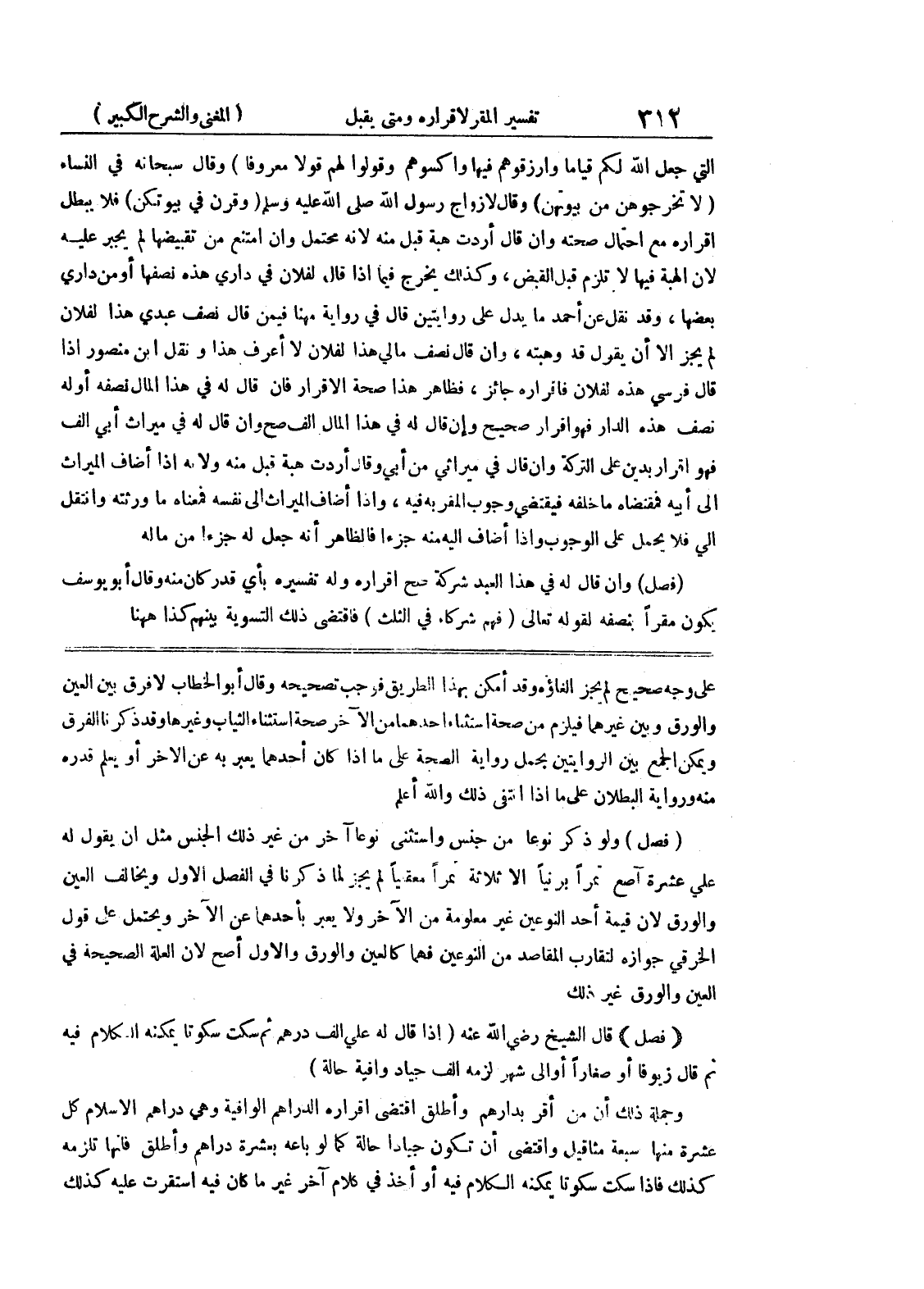 ويمكن الجمع بين الروايتين بحمل رواية الصحة على ما إذا كان أحدهما يعبر به عن الآخر أو يعلم قدره منه ورواية البطلان على ما إذا انتفى ذلك والله أعلم (فصل) ولو ذكر نوعاً من جنس واستثنى نوعاً آخر من غير ذلك الجنس مثل أن يقول له علي عشرة آصح تمراً برنياً إلا ثلاثة تمرا معقيا لم يجز لما ذكرنا في الفصل الأول ويخالف العين والورق لأن قيمة أحد النوعين غير معلومة من الآخر ولا يعبر بأحدهما عن الآخر ويحتمل على قول الخرقي جوازه لتقارب المقاصد من النوعين فهما كالعين والورق والأول أصح لأن العلة الصحيحة في العين والورق غير ذلك (فصل) قال الشيخ رضي الله عنه (إذا قال له على ألف درهم ثم سكت سكوتاً يمكنه الكلام فيه ثم قال زيوفاً او صغاراً أو إلى شهر لزمه ألف جياد وافية حالة) وجملة ذلك أن من أقر بدارهم وأطلق اقتضى إقراره الدراهم الوافية وهي دراهم الإسلام كل عشرة منها سبعة مثاقيل واقتضى أن تكون جياداً حاله كما لو باعه بعشرة دراهم وأطلق فإنها تلزمه كذلك فإذا سكت سكوتاً يمكنه الكلام فيه أو أخذ في كلام آخر غير ما كان فيه استقرت عليه كذلك