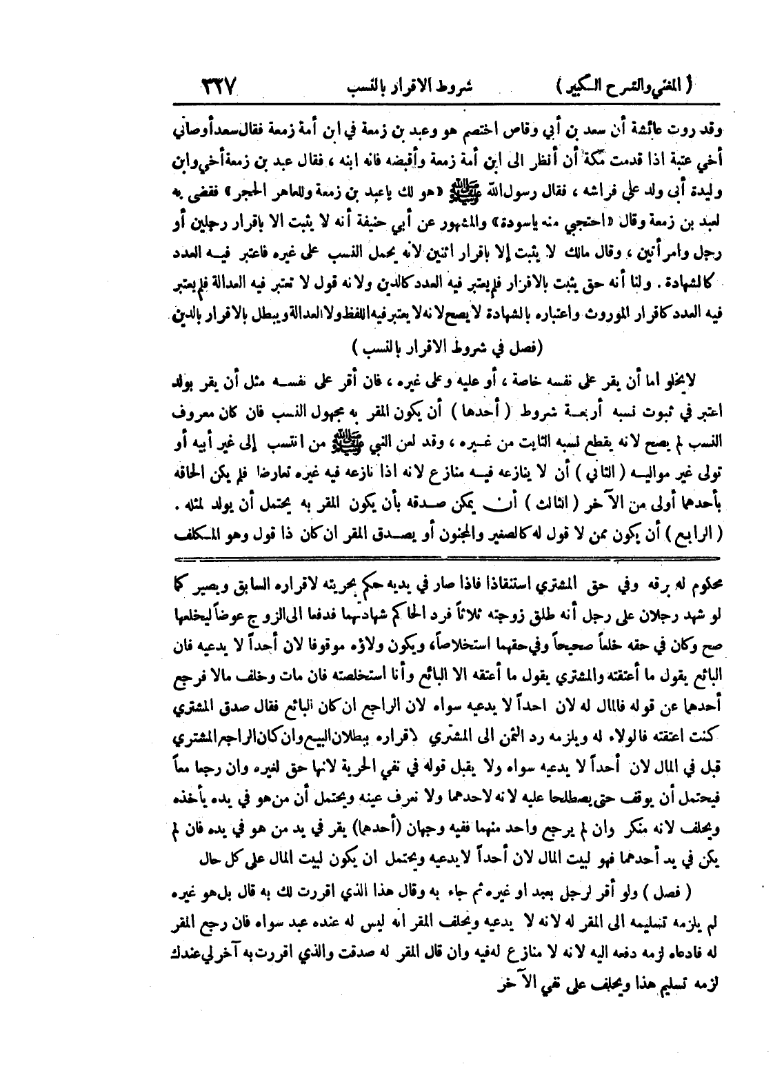 أحدهما عن قوله فالمال له لأن أحداً لا يدعيه سواه لأن الراجع إن كان البائع فقال فقال المشتري كنت أعتقته فالولاء له ويلزمه رد الثمن إلى المشتري لإقراره ببطلان البيع وإن كان الراجع المشتري قبل في المال لأن أحداً لا يدعيه سواه ولا يقبل قوله في نفي الحرية لأنها حق لغيره وإن رجعا معاً فيحتمل أن يوقف حتى يصطلحا عليه لأنه لأحدهما ولا نعرف عينه ويحتمل أن من هو في يده يأخذه ويحلف لأنه منكر وإن لم يرجع واحد منهما ففيه وجهان (أحدهما) يقر في يد من هو في يده فإن لم يكن في يد أحدهما فهو لبيت المال لأن أحداً لا يدعيه ويحتمل أن يكون لبيت المال على كل حال (فصل) ولو أقر لرجل بعبد أو غيره ثم جاء به وقال هذا الذي أقررت لك به قال بل هو غيره لم يلزمه تسلميه إلى المقر له لأنه لا يدعيه ويحلف المقر أنه ليس له عنده عبد سواه فإن رجع المقر له فادعاه لزمه دفعه إليه لأنه لا منازع له فيه وان قال المقر له صدقت والذي أقررت به آخر لي عندك لزمه تسليم هذا ويحلف على نفي الآخر
