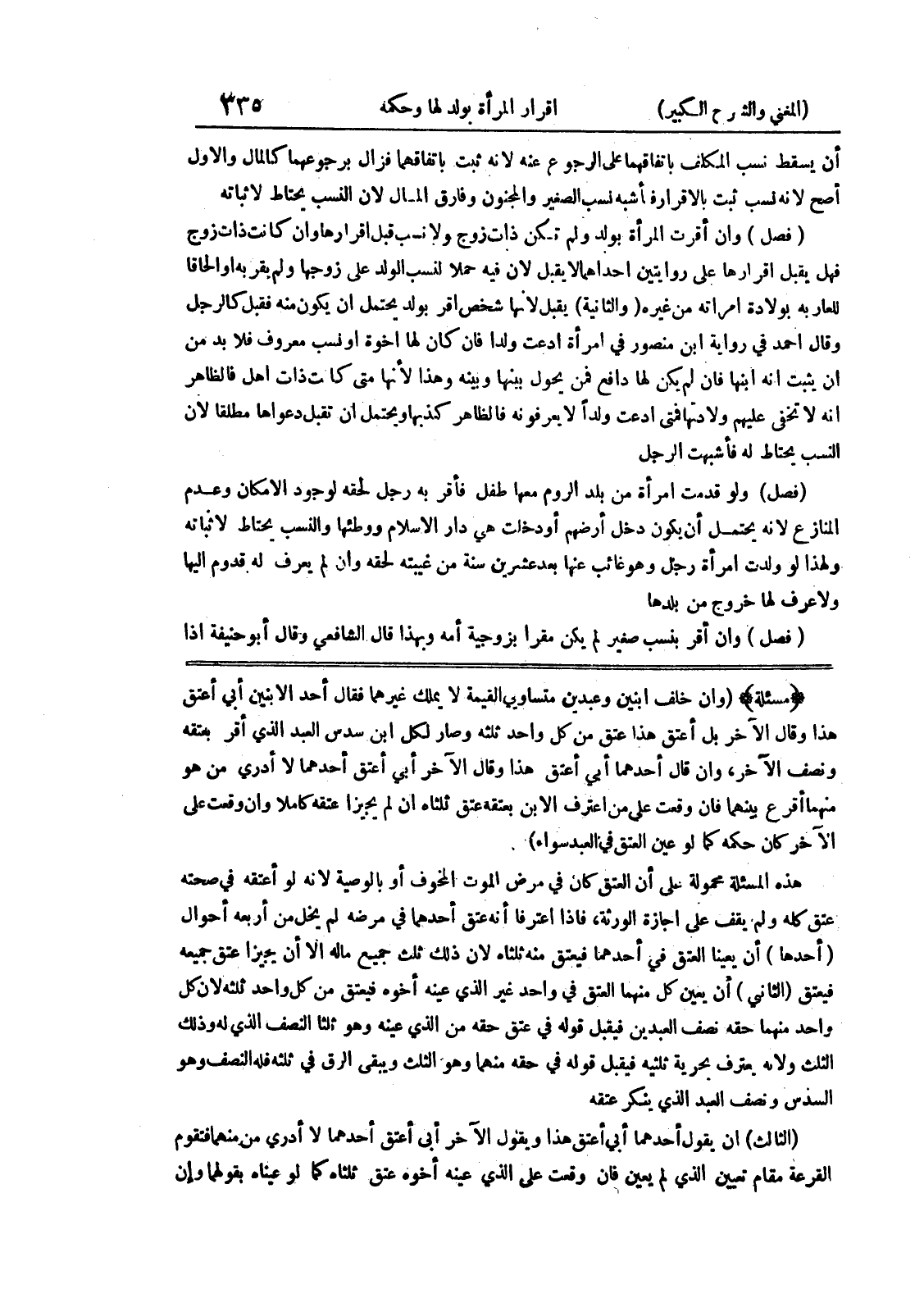 (مسألة) (وإن خلف ابنين وعبدين متساوي القيمة لا يملك غيرهما فقال أحد الابنين أبي أعتق هذا وقال الآخر بل أعتق هذا عتق من كل واحد ثلثه وصار لكل ابن سدس العبد الذي أقر بعتقه ونصف الآخر، وإن قال أحدهما أبي أعتق هذا وقال الآخر أبي أعتق أحدهما لا أدري من هو منهما أقرع بينهما فإن وقعت على من اعترف الابن بعتقه عتق ثلثاه إن لم يجيزا عتقه كاملا وإن وقعت على الآخر كان حكمه كما لو عين العتق في العبد سواء) .