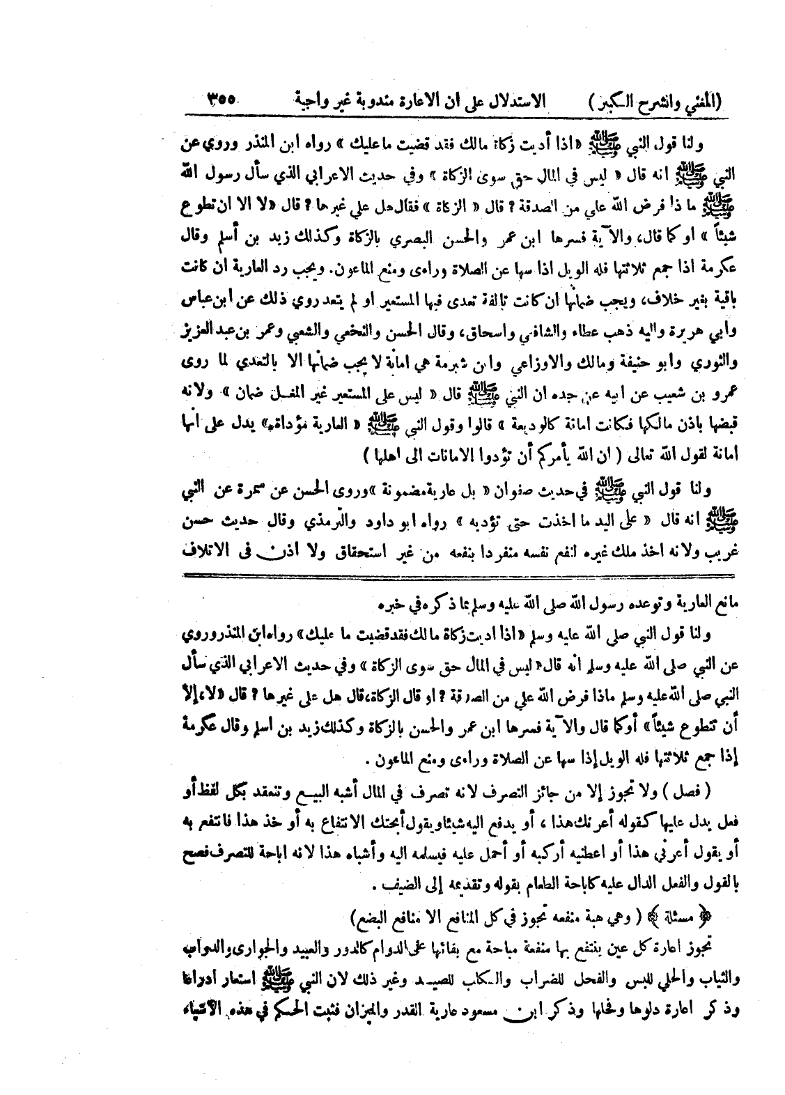 مانع العارية وتوعده رسول الله صلى الله عليه وسلم بما ذكره في خبره ولنا قول النبي صلى الله عليه وسلم (إذا أديت زكاة مالك فقد قضيت ما عليك) رواه ابن المنذر وروي عن النبي صلى الله عليه وسلم أنه قال (ليس في المال حق سوى الزكاة) وفي حديث الإعرابي الذي سأل النبي صلى الله عليه وسلم ماذا فرض الله علي من الصدقة؟ أو قال الزكاة، قال هل علي غيرها؟ قال (لا، إلا أن تتطوع شيئاً) أو كما قال والآية فسرها ابن عمر والحسن بالزكاة وكذلك زيد بن أسلم وقال عكرمة إذا جمع ثلاثتها فله الويل إذا سها من الصلاة وراءى ومنع الماعون.