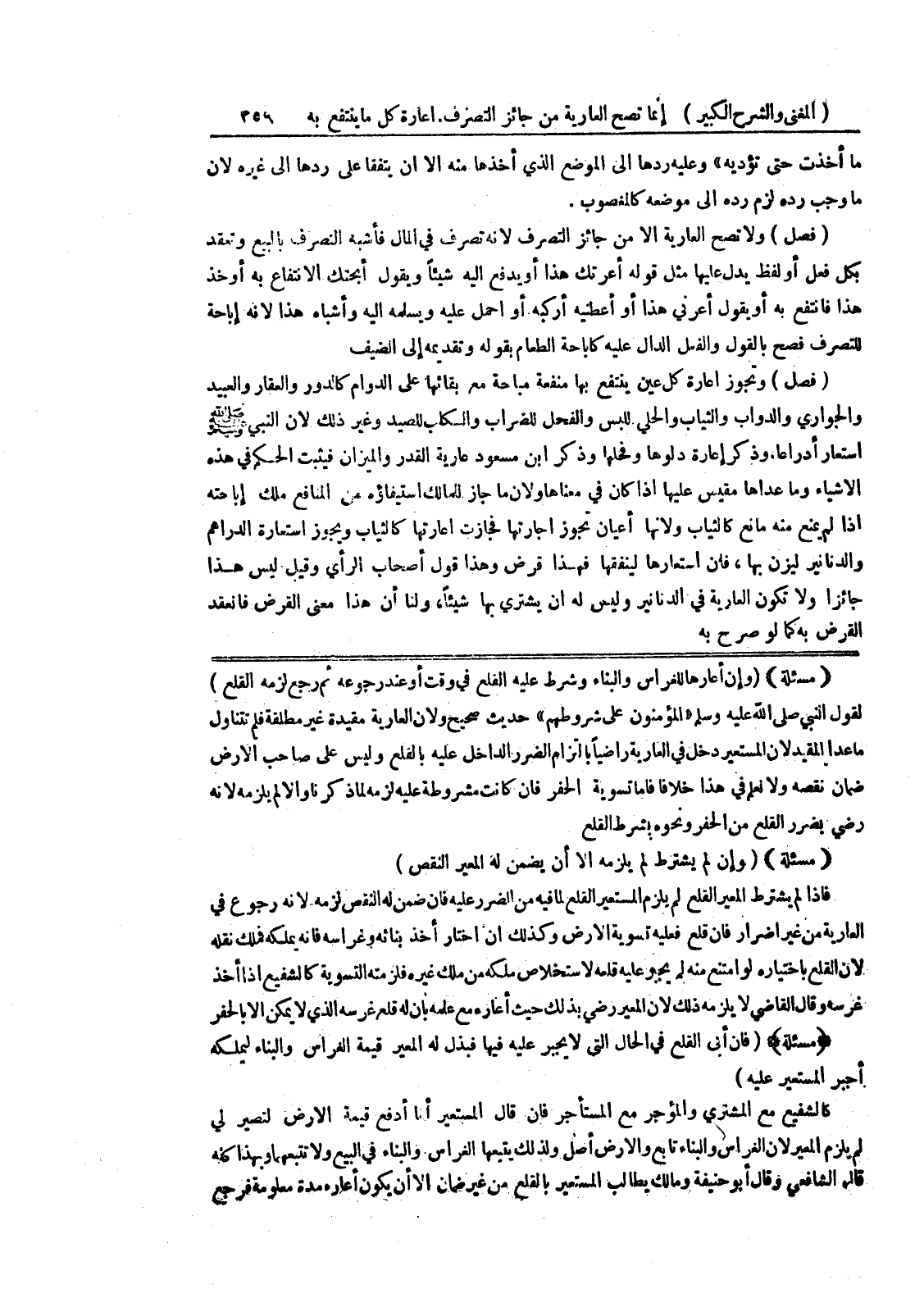 ضمان نقصه ولا نعلم في هذا خلافاً فأما تسوية الحفر فإن كانت مشروطة عليه لزمه لما ذكرنا وإلا لم يلزمه لأنه رضي بضرر القطع من الحفر ونحوه بشرط القلع (مسألة) (وإن لم يشترط لم يلزمه إلا أن يضمن له المعير النقص) فإذا لم يشترط المعير القلع لم يلزم المستعير القلع لما فيه من الضرر عليه فإن ضمن له النقص لزمه لأنه رجوع في العارية من غير إضرار فإن قلع فعليه تسوية الأرض وكذلك إن اختار أخذ بنائه وغراسه فإنه يملكه فملك نقله لأن القلع باختياره لو امتنع منه لم يجبر عليه قلعه لاستخلاص ملكه من ملك غيره فلزمته التسوية كالشفيع إذا أخذ غرسه وقال القاضي لا يلزمه ذلك لأن المعير رضي بذلك حيث أعاره مع علمه بأن له قلع غرسه الذي لا يمكن إلا بالحفر (مسألة) (فإن أبى القلع في الحال التي لا يجبر عليه فيها فبذل له المعير قيمة الغراس والبناء ليملكه أجبر المستعير عليه) كالشفيع مع المشتري والمؤجر مع المستأجر فإن قال المستعير أنا أدفع قيمة الأرض لتصير لي لم يلزم المعير لأن الغراس والبناء تابع والأرض أصل ولذلك يتبعها الغراس والبناء في البيع ولا تتبعهما وبهذا كله قال الشافعي وقال أبو حنيفة ومالك يطالب المستعير بالقلع من غير ضمان إلا أن يكون أعاره مدة معلومة فرجع