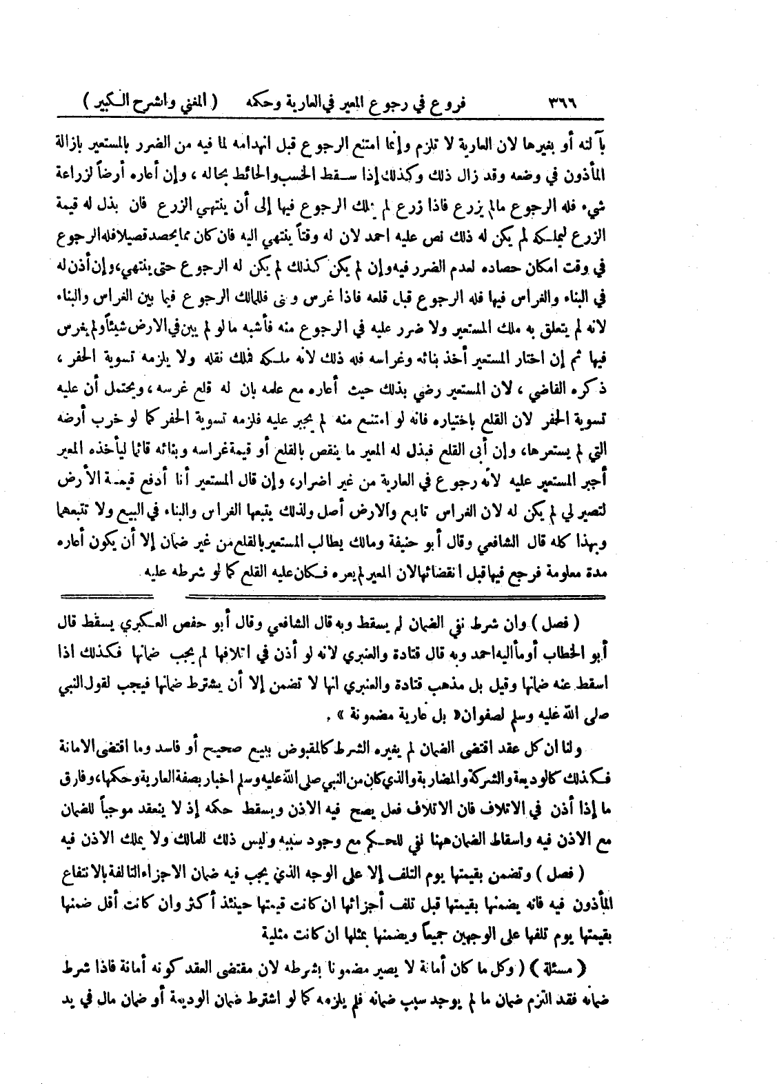 (فصل) وإن شرط نفي الضمان لم يسقط وبه قال الشافعي وقال أبو حفص العكبري يسقط قال أبو الخطاب أو ما إليه أحمد وبه قال قتادة والعنبري لأنه لو أذن في إتلافها لم يجب ضمانها فكذلك إذا أسقط عنه ضمانها وقيل بل مذهب قتادة والعنبري أنها لا تضمن إلا أن يشترط ضمانها فيجب لقول النبي صلى الله عليه وسلم لصفوان (بل عارية مضمونة) ولنا أن كل عقد اقتضى الضمان لم يغيره الشرط كالمقبوض ببيع صحيح أو فاسد وما اقتضى الأمانة فكذلك كالوديعة والشركة والمضاربة والذي كان من النبي صلى الله عليه وسلم إخبار بصفة العارية وحكمها، وفارق ما إذا إذن في الإتلاف فإن الإتلاف فعل يصح فيه الإذن ويسقط حكمه إذ لا ينعقد موجباً للضمان