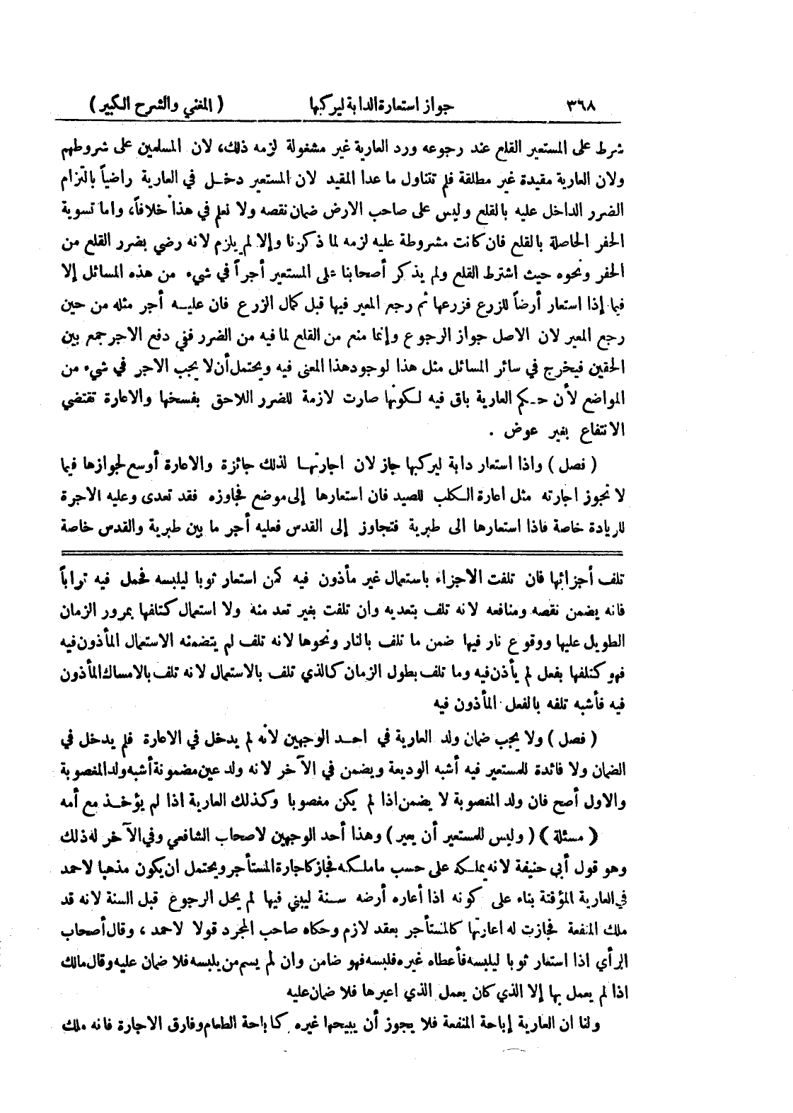 تلف أجزائها فإن تلفت الأجزاء باستعمال غير مأذون فيه كمن استعار ثوبا ليلبسه فحمل فيه تراباً فإنه يضمن نقصه ومنافعه لأنه تلف بتعديه وإن تلفت بغير تعد منه ولا استعمال كتلفها بمرور الزمان الطويل عليها ووقوع نار فيها ضمن ما تلف بالنار ونحوها لأنه تلف لم يتضمنه الاستعمال المأذون فيه فهو كتلفها بفعل لم يأذن فيه وما تلف بطول الزمان كالذي تلف بالاستعمال لأنه تلف بالإمساك المأذون فيه فأشبه تلفه بالفعل المأذون فيه (فصل) ولا يجب ضمان ولد العارية في أحد الوجهين لأنه لم يدخل في الإعارة فلم يدخل في الضمان ولا فائدة للمستعير فيه أشبه الوديعة ويضمن في الآخر لأنه ولد عين مضمونة أشبه ولد المغصوبة والأول أصح فإن ولد المغصوبة لا يضمن إذا لم يكن مغصوباً وكذلك العارية إذا لم يؤخذ مع أمه (مسألة) (وليس للمستعير أن يعير) وهذا أحد الوجهين لأصحاب الشافعي وفي الآخر له ذلك وهو قول أبي حنيفة لأنه يملكه على حسب ما ملكه فجاز كإجارة المستأجر ويحتمل أن يكون مذهب لاحمد في العارية المؤقتة بناء على كونه إذا أعاره أرضه سنة ليبني فيها لم يحل الرجوع قبل السنة لأنه قد ملك المنفعة فجازت له إعارتها كالمتسأجر بعقد لازم وحكاه صاحب المجرد قولا لاحمد، وقال أصحاب الرأي إذا استعار ثوباً ليلبسه فأعطاه غيره فلبسه فهو ضامن وإن لم يسم من يلبسه فلا ضمان عليه وقال مالك إذا لم يعمل بها إلا الذي أعيرها فلا ضمان عليه ولنا أن العارية إباحة المنفعة فلا يجوز أن يبيحها غيره كإباحة الطعام وفارق الإجارة فإنه ملك