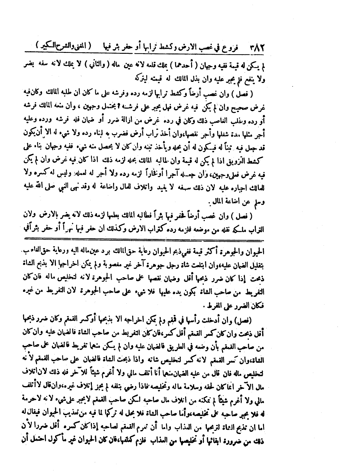 الحيوان والجوهرة أكثر قيمة ففي ذبح اليحوان رعاية حق المالك برد عين إليه ورعاية حق الغاصب بتقليل الضمان عليه، وإن ابتلعت شاة رجل جوهرة آخر غير مغصوبة ولم يكن إخراجها إلا بذبح الشاة ذبحت إذا كان ضرر ذبحها أقل وضمان نقصها على صاحب الجوهرة لأنه لتخليص ماله فإن كان التفريط من صاحب الشاة بكون يده عليها فلا شئ على صاحب الجوهرة لأن التفريط من غيره فكان الضرر على المفرط.