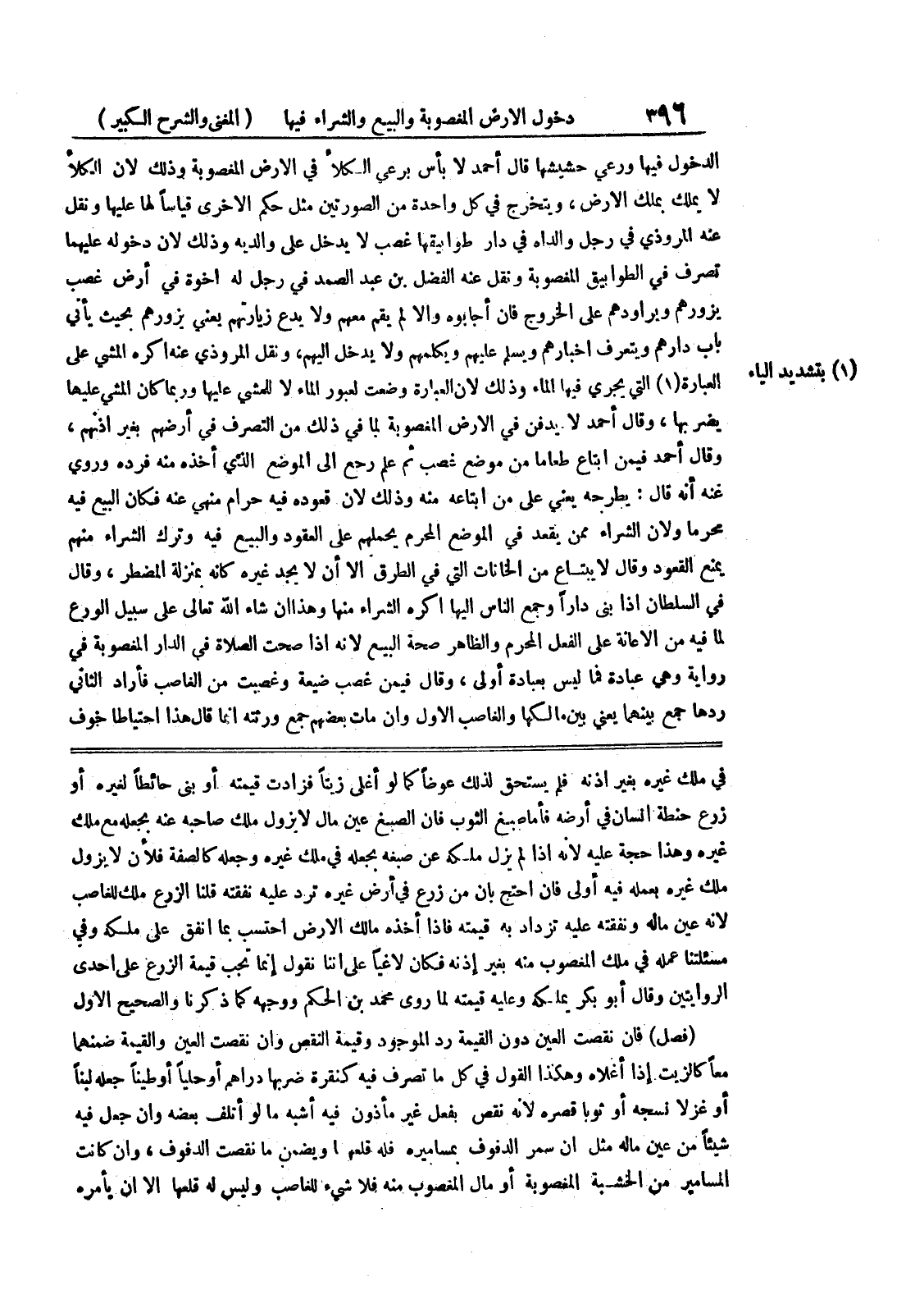 لأنه عين ماله ونفقته عليه تز داد به قيمته فإذا أخذه مالك الأرض احتسب بما أنفق على ملكه وفي مسئلتنا عمله في ملك المغصوب منه بغير إذنه فكان لاغياً على أننا نقول إنما تجب قيمة الزرع على إحدى الروايتين وقال أبو بكر يملكه وعليه قيمته لما روى محمد بن الحكم ووجهه كما ذكرنا والصحيح الأول (فصل) فإن نقصت العين دون القيمة رد الموجود وقيمة النقص وان نقصت اليعن القيمة ضمنهما معا كالزيت إذا أغلاه وهكذا القول في كل ما تصرف فيه كنقرة ضربها دراهم أو حلياً أو طيناً جعله لبناً أو عزلا نسجه أو ثوبا قصره لأنه نقص بفعل غير مأذون فيه أشبه مالو أتلف بعضه وإن جعل فيه شيئاً من عين ماله مثل أن سمر الدفوف بمساميره فله قلعها ويضمن ما نقصت الدفوف، وإن كانت المسامير من الخشبة المغصوبة أو مال المغصوب منه فلا شئ للغاصب وليس له قلعها إلا أن يأمره