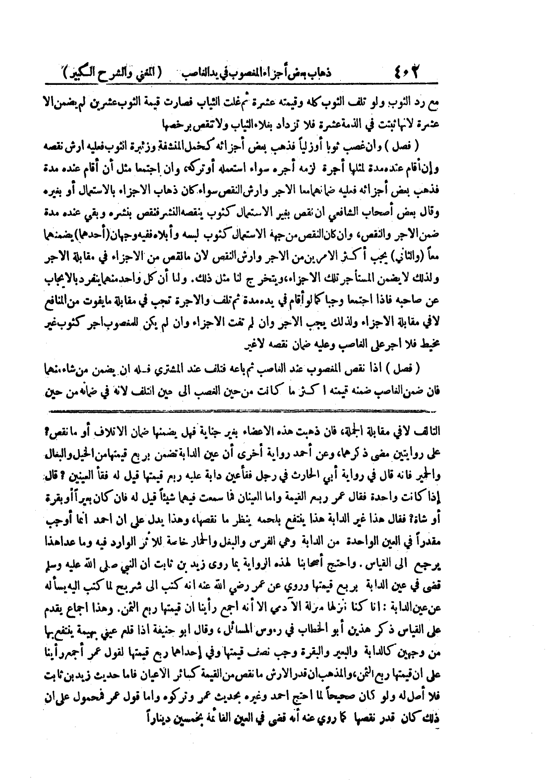 التالف لا في مقابلة الجملة، فإن ذهبت هذه الأعضاء بغير جناية فهل يضمنها ضمان الإتلاف أو ما نقص؟ على روايتين مضى ذكرهما، وعن أحمد رواية أخرى أن عين الدابة تضمن بربع قيمتها من الخيل والبغال والحمير فإنه قال في رواية أبي الحارث في رجل فقأ عين دابة عليه ربع قيمتها قيل له فقأ العينين؟ قال إذا كانت واحدة فقال عمر ربع القيمة وأما العينان فما سمعت فيهما شيئاً قيل له فإن كان بعيراً أو بقرة أو شاة؟ فقال هذا غير الدابة هذا ينتفع بلحمه ينظر ما نقصها، وهذا يدل على أن أحمد إنما أو جب مقدراً في العين الواحدة من الدابة وهي الغرس والبغل والحمار خاصة للأثر الوارد فيه وما عدا هذا يرجع إلى القياس.