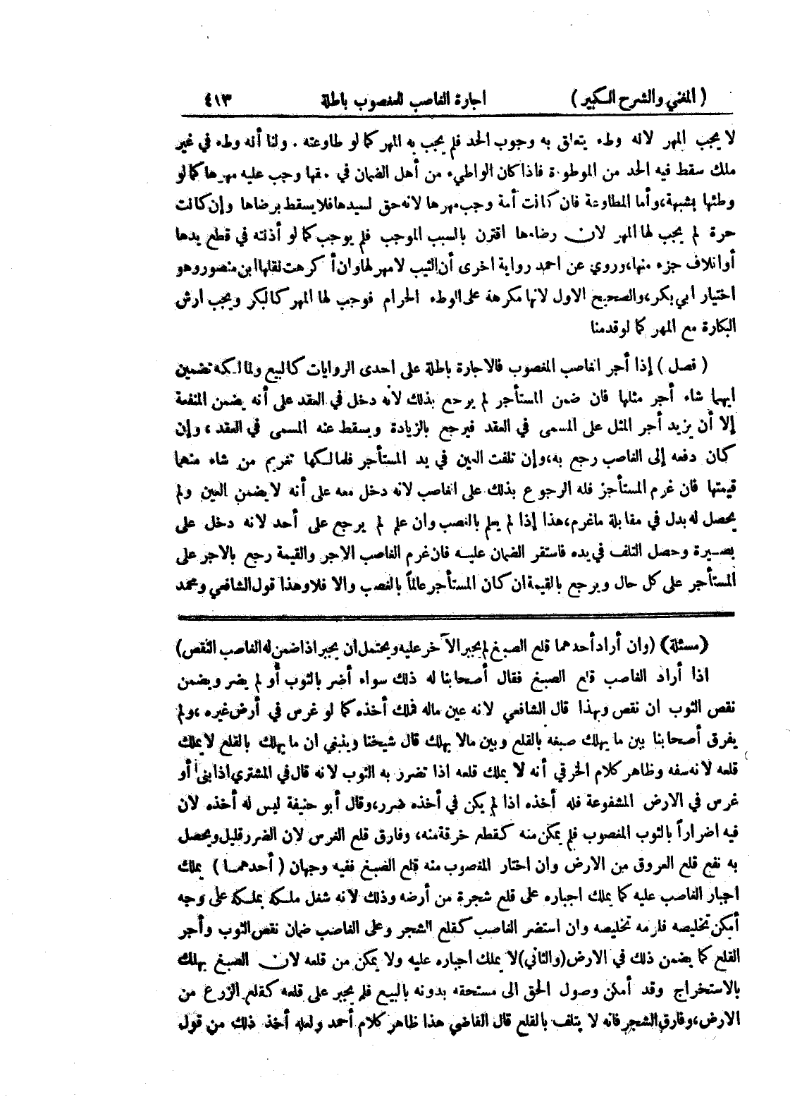 (مسألة) (وإن أراد أحدهما قلع الصبغ لم يجبر الآخر عليه ويحتمل أن يجبر إذا ضمن له الغاصب النقص) إذا أراد الغاصب قطع الصبغ فقال أصحابنا له ذلك سواء أضر بالثوب أو لم يضر ويضمن نقص الثوب إن نقص وبهذا قال الشافعي لأنه عين ماله فملك أخذه كما لو غرس في أرض غيره، ولم يفرق أصحابنا بين ما يهلك صبغه بالقلع وبين مالا يهلك قال شيخنا وينبغي أن ما يهلك بالقلع لا يملك قلعه لأنه سفه وظاهر كلام الخرقي أنه لا يملك قلعه إذا تضرر به الثوب لأنه قال في المشتري إذا بنى أو غرس في الأرض المشفوعة فله أخذه إذا لم يكن في أخذه ضرر، وقال أبو حنيفة ليس له أخذه لأن فيه إضراراً بالثوب المغصوب فلم يمكن منه كقطع خرقة منه، وفارق قلع الغرس لأن الضرر قليل ويحصل به نفع قلع العروق من الأرض وإن اختار المغصوب منه قلع الصبغ ففيه وجهان (أحدهما) يملك إجبار الغاصب عليه كما يملك إجباره على قلع شجرة من أرضه وذلك لأنه شغل ملكه بملكه على وجه أمكن تخليصه فلزمه تخليصه وإن استضر الغاصب كقلع الشجر وعلى الغاصب ضمان نقص الثوب وأجر بالاستخراج وقد أمكن وصول الحق إلى مستحقه بدونه بالبيع فلم يجبر على قلع كقلع الزرع من الأرض، وفارق الشجر فإنه لا يتلف بالقلع قفال القاضي هذا ظاهر كلام أحمد ولعله أخذ ذلك من قول