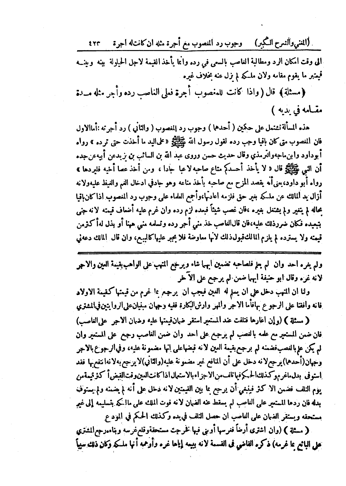 فإن ضمن المستعير مع علمه بالغصب لم يرجع على أحد وإن ضمن الغاصب رجع على المستعير وإن لم يكن علم بالغصب فضمنه لم يرجع بقيمة العين لأنه قبضها على أنها مضمونة عليه، وفي الرجوع بالأجر وجهان (أحدهما) يرجع لأنه دخل على أن المنافع غير مضمونة عليه (والثاني) لا يرجع به لأنه انتفع بها فقد استوفى بدل ما غرم وكذلك الحكم فيما تلف من الأجزاء بالاستعمال إذا كانت العين وقت القبض أكثر قيمة من يوم التلف فضمن الأكثر فينبغي أن يرجع بما بين القيمتين لأنه دخل على أنه لم يضمنه ولم يستوف بدله فإن ردها المستعير على الغاصب لم يسقط عنه الضمان لانه فوت الملك على مالكه بتسليمه إلى غير مستحقه ويستقر الضمان على الغاصب إن حصل التلف في يده وكذلك الحكم في المودع (مسألة) (وإن اشترى أرضاً فغرسها أو بنى فيها فخرجت مستحقة وقلع غرسه وبناءه رجع المشتري على البائع بما غرمه) ذكره القاضي في القسمة لأنه ببيعه إياها غره وأوهمه أنها ملكه وكان ذلك سبيا