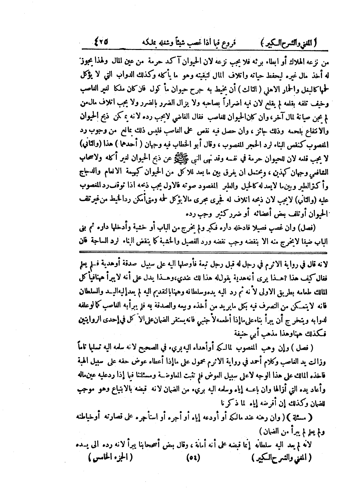 لأنه قال في رواية الأثرم في رجل له قبل رجل تبعه فأوصلها إليه على سبيل صدقة أو هدية فلم يعلم فقال كيف هذا؟ هذا يرى أنه هدية يقول له هذا لك عندي، وهذا يدل على أنه لا يبرأ ههنا فيأكل المالك طعامه بطريق الأولى لأنه ثم رد إليه يده وسلطانه وههنا بالتقديم إليه لم يعد إليه اليد والسلطان فإنه لا يتمكن من التصرف فيه بكل ما يريد من أخذه وبيعه والصدقة به فلم يبرأ به الغاصب كما لو علفه لدوابه ويتخرج أن يبرأ بناء على ما إذا أطعمه لأجنبي فإنه يستقر الضمان على الآكل في إحدى الروايتين فكذلك ههنا وهذا مذب أبي حنيفة (فصل) وإن وهب المغصوب لمالكه أو أهداء إليه برئ في الصحيح لأنه سلمه اليه تسليماً تاماً وزالت يد الغاصب وكلام أحمد في رواية الأثرم محمول على ما إذا أعطاه عوض حقه على سبيل الهبة فأخذه المالك على هذا الوجه لا على سبيل العوض فلم تثبت المعاوضة ومسئلتنا فيما إذا رد عليه عين ماله وأعاد يده التي أزالها وإن باعه إياه وسلمه إليه برئ من الضمان لأنه قبضه بالإبتياع وهو موجب للضمان وكذلك إن أقرضه إياه لما ذكرنا (مسألة) (وإن رهنه عند مالكه أو أودعه إياه أو أجره أو استأجره على قصارته أو خياطته ولم يعلم لم يبرأ من الضمان) لأنه لم يعد إليه سلطانه إنما قبضه على أنه أمانة، وقال بعض أصححابنا يبرأ رده إلى يده