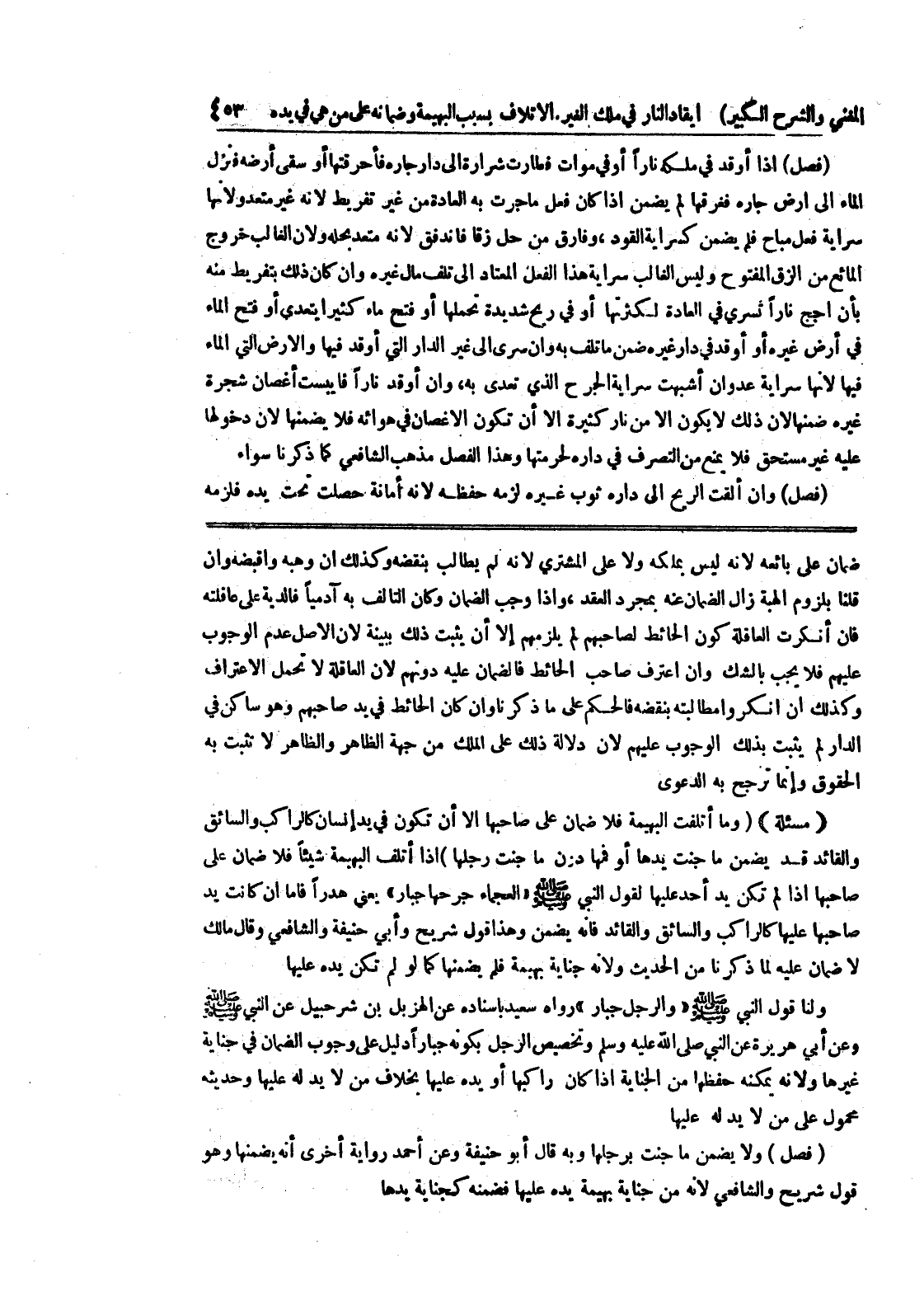 فإن أنكرت العاقلة كون الحائط لصاحبهم لم يلزمهم إلا أن يثبت ذلك ببينة لأن الأصل عدم الوجوب عليهم فلا يجب بالشك وإن إعترف صاحب الحائط فالضمان عليه دونهم لأن العاقلة لاتحمل الإعتراف وكذلك إن أنكروا مطالبته بنقضه فالحكم على ما ذكرنا وإن كان الحائط في يد صاحبهم وهو ساكن في الدارلم يثبت بذلك الوجوب عليهم لأن دلالة ذلك على الملك من جهة الظاهر والظاهر لا تثبت به الحقوق وإنما ترجح به الدعوى (مسألة) (وما أتلفت البهية فلا ضمان على صاحبها إلا أن تكون في يد إنسان كالراكب والسائق والقائد قد يضمن ما جنت يدها أو فمها دون ما جنت رجلها) إذا أتلف البهيمة شيئاً فلا ضمان على صاحبها إذا لم تكن يد أحد عليه القول النبي صلى الله عليه وسلم (العجماء جرحها جبار) يعني هدرا فأما إن كانت يد صاحبها عليها كالراكب والسائق القائد فانه يضمن وهذا قول شريح وأبي حنيفة والشافعي وقال مالك لا ضمان عليه لما ذكرنا من الحديث ولأنه جناية بهبمة فلم يضمنها كما لو لم تكن ييده عليها ولنا قول النبي صلى الله عليه وسلم (والرجل جبار) رواه سعيد بإسناده عن الهزبل بن شرحبيل عن النبي صلى الله عليه وسلم وعن أبي هريرة عن النبي صلى الله عليه وسلم وتخصيص الرجل بكونه جباراً دليل على وجوب الضمان في جناية غيرها ولأنه يمكنه حفظها من الجناية إذا كان راكبها أو يده عليها بخلاف من لا يدله عليه وحديثه محمول على من لا يدله عليها (فصل) ولا يضمن ما جنت برجلها وبه قال أبو حنيفة وعن أحمد رواية أخرى أنه يضمنها وهو قول شريح والشافعي لأنه من جناية بهيمة يده عليها فضمنه كجناية يدها