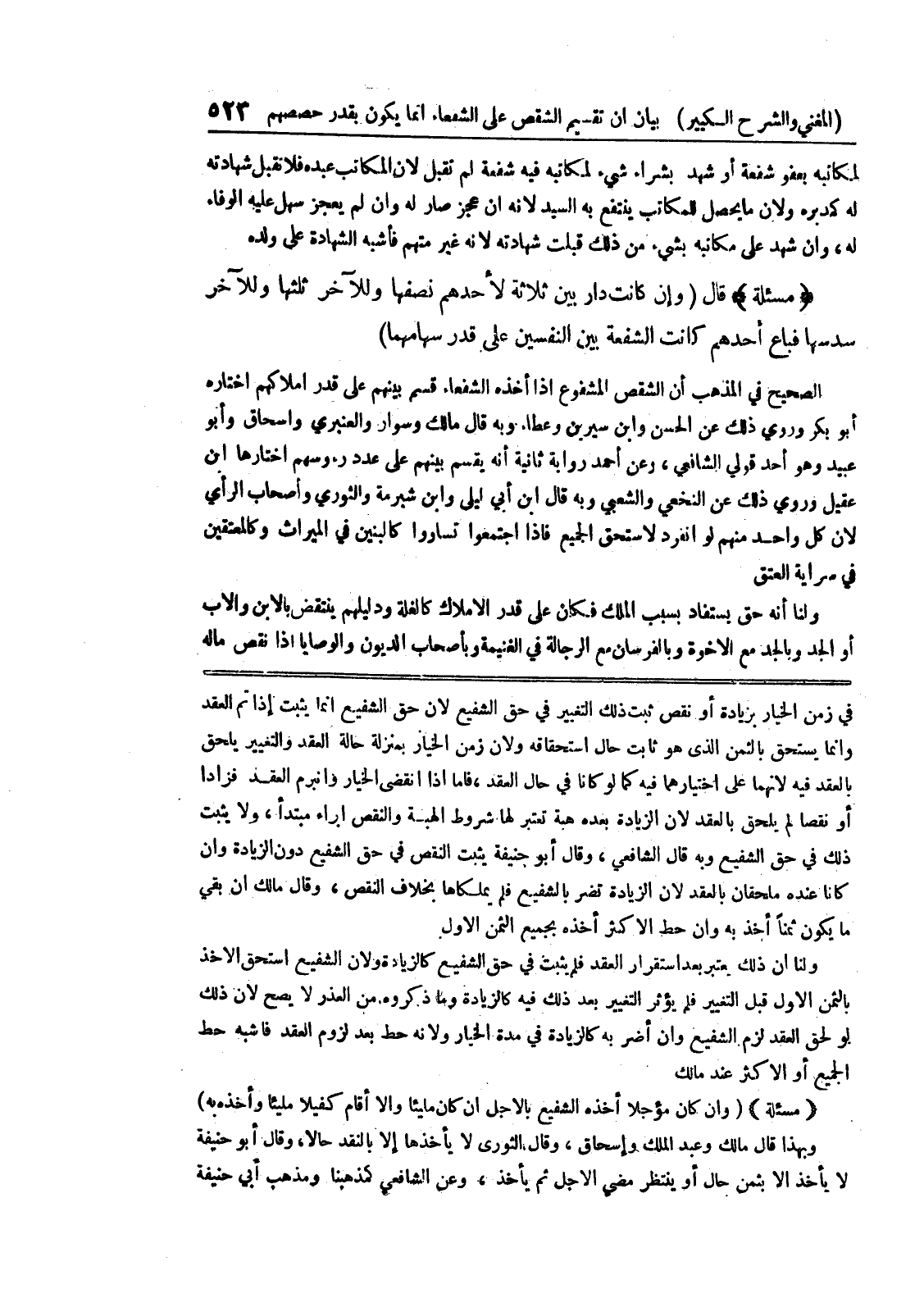 ولنا أن ذلك يعتبر بعد استقرار العبد فلم يثبت في حق الشفيع كالزيادة ولأن الشفيع استحق الأخذ بالثمن الأول قبل التغيير فلم يؤثر التغيير بعد ذلك فيه كالزيادة وما ذكروه من العذدر لا يصح لأن ذلك لو لحق العقد لزم الشفيع وإن أضر به كالزيادة في مدة الخيار ولأنه حط بعد لزوم العقد فأشبه حط الجميع أو الأكثر عند مالك (مسألة) (وإن كان مؤجلا أخذه الشفيع بالأجل إن كان مليئاً وإلا أقام كفيلا مليئاً وأخذه به) وبهذا قال مالك وعبد الملك وإسحاق، وقال الثوري لا يأخذها إلا بالنقد حالا، وقال أبو حنيفة لا يأخذ إلا بثمن حال أو ينتظر مضي الأجل ثم يأخذ، وعن الشافعي كمذهبنا ومذهب أبي حنيفة