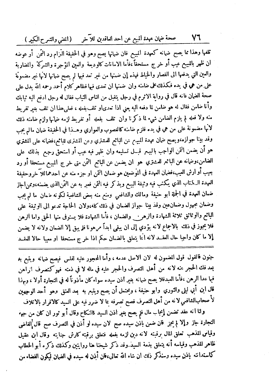 جنون فالقول قول المضمون له لأن الأصل عدمه، وأما المحجور عليه لفلس فيصح ضمانه ويتبع به بعد فك الحجر عنه لأنه من أهل التصرف والحجر عليه في ماله لا في ذمته فهو كتصرف الراهن فيما عدا الرهن، فأما العبد فلا يصح ضمانه بغير إذن سيده سواء كان مأذوناً له في التجارة أولا، وبهذا قال ابن أبي ليلى والثوري وابو حنيفة، ويحتمل أن يصح ويتبع به بعد العتق وهو أحد الوجهين لأصحاب الشافعي لأنه من أهل التصرف فصح تصرفه بما لا ضرر فيه على السيد كالإقرار بالإتلاف ولنا أنه عقد تضمن إيجاب فلم يصح بغير إذن السيد كالنكاح وقال أبو ثور إن كان من جهة التجارة جاز وإلا لم يجز فإن ضمن بإذن سيده صح لأن سيده لو أذن في التصرف صح قال القاضي وقياس المذهب تعلق المال برقبته لأنه دين لزمه بفعله فتعلق برقبته كارش جنايته وقال ابن عقيل ظاهر المذهب وقياسه أنه يتعلق بذمة السيد.