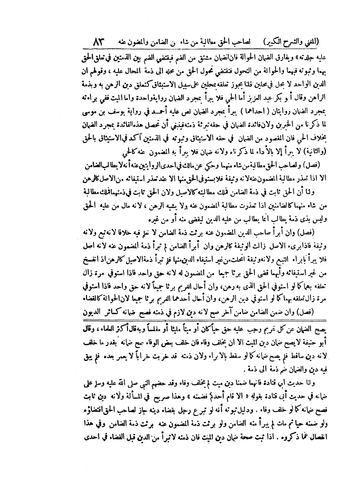 ودليل ثبوته أنه لو تبرع رجل بقضاء دينه جاز لصاحب الحق اقتضاؤه ولو ضمنه حياثم مات لم يبرأ منه الضامن ولو برئت ذمة المضمون عنه برئت ذمة الضامن وفي هذا انفصال عما ذكروه.