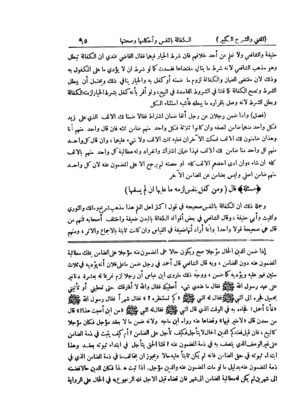 (فأنا أحمل؟ فجاءه به في الوقت الذي قال النبي صلى الله عليه وسلم فقال له النبي صلى الله عليه وسلم (من ابن أصبت هذا؟) قال من معدن قال (لا خير فيها) وقضاها عنه رواه ابن ماجه ولأنه ضمن مالاً بعقد مؤجل فكان مؤجلاً كالبيع، فإن قيل فعندكم الدين الحال لا يتأجل فكبف تأجل على الضامن؟ أم كيف يثبت في ذمة الضامن على غير الوصف الذي يتصف به في ذمة المضمون عنه؟ قلنا الحق يتأجل في ابتداء ثبوته بعقد وهذا ابتداء ثبوته في حق الضامن فإنه لم يكن ثابتاً عليه حالا ويجوز أن يخالف ما في ذمة الضامن الذي في ذمة المضمون عنه بدليل ما لو مات المضمون عنه والدين مؤجل.