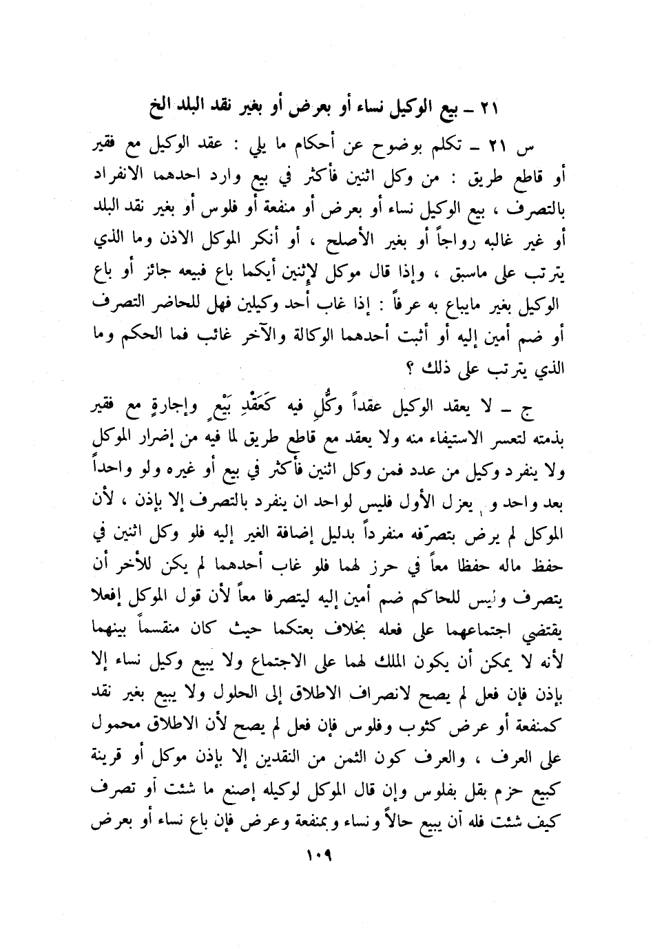 21- بيع الوكيل نساء أو بعرض أو بعير نقد البلد إلخ
