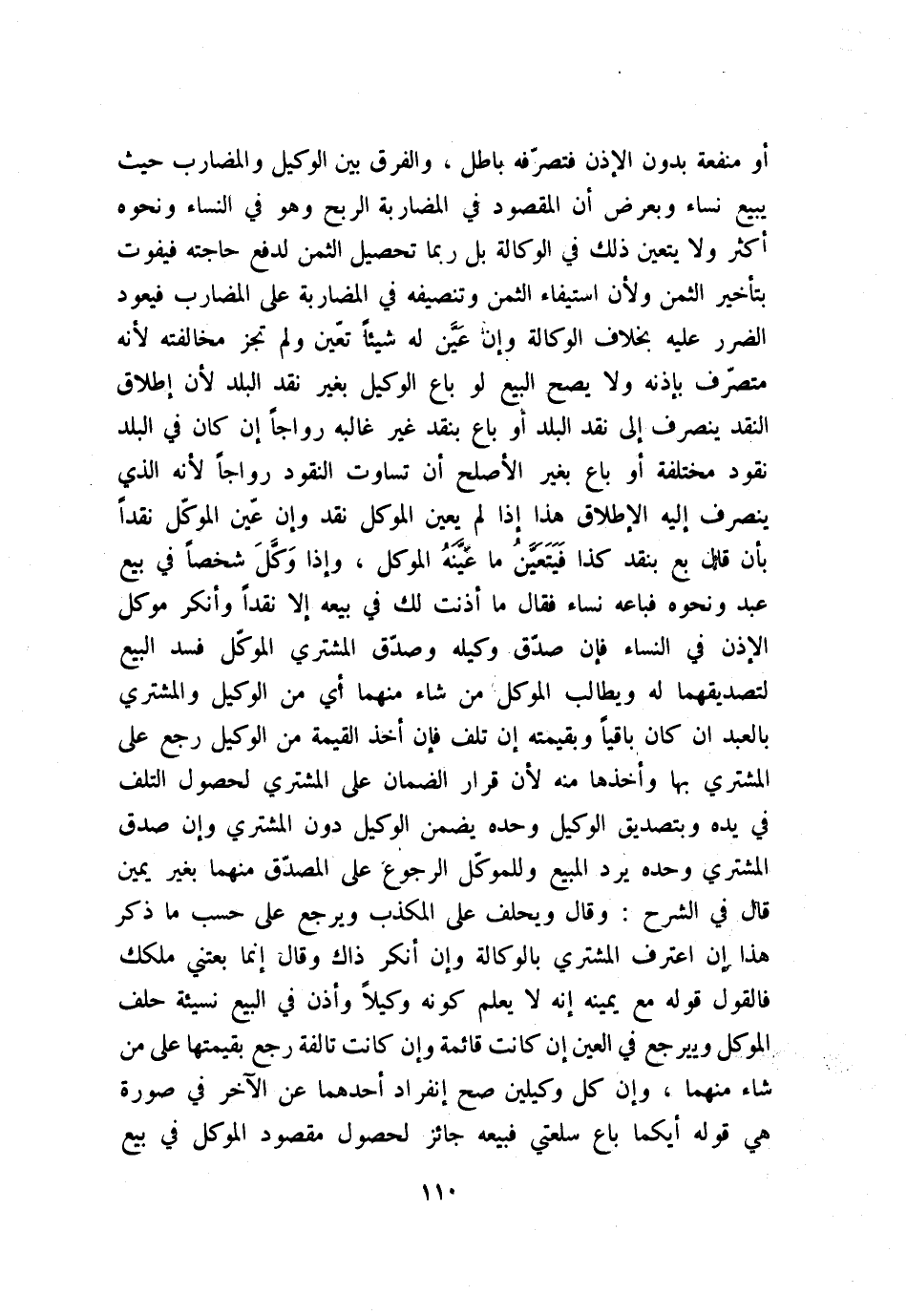 أو منفعة بدون الإذن فتصرفه باطل، والفرق بين الوكيل والمضارب حيث يبيع نساء وبعرض، أن المقصود في المضاربة الربح، وهو في النساء ونحوه أكثر، ولا يتعين ذلك في الوكالة، بل ربما تحصيل الثمن لدفع حاجته فيفوت بتأخير الثمن؛ ولأن استيفاء الثمن وتنصيفه في المضاربة على المضارب فيعود الضرر عليه بخلاف الوكالة، وإن عيَّن له شيئًا تعين ولم تجز مخالفته؛ لأنه متصرف بإذنه ولا يصح البيع لو باع الوكيل بغير نقد البلد؛ لأن إطلاق النقد ينصرف إلى نقد البلد أو باع بنقد غير غالبه رواجًا إن كان في البلد نقود مختلفة أو باع بغير الأصلح أن تساوت النقود رواجًا؛ لأنه الذي ينصرف إليه الإطلاق هذا إذا لم يعين الموكل نقد وإن عين الموكّل نقدًا بأن قال: بع بنقد كذا، فيتعين ما عينه الموكل، وإذا وكل شخصًا في بيع عبد ونحوه فباعه نساء، فقال: ما أذنت لك في بيعه إلا نقدًا، وأنكر موكل الإذن في النسا؛ فإن صدّق وكيله وصدّق المشتري الموكّل فسد البيع لتصديقهما له، ويطالب الموكل من شاء منهما، أي من الوكيل والمشتري بالعبد إن كان باقيًا وبقيمته إن تلف؛ فإن أخذ القيمة من الوكيل رجع على المشتري بها وأخذها منه؛ لأن قرار الضمان على المشتري لحصول التلف في يده وبتصديق الوكيل وحده يضمن الوكيل دون المشتري وإن صدق المشتري وحده يرد المبيع وللموكّل الرجوع على المصدّق منهما بغير يمين. قال في «الشرح» : وقال ويحلف على المكذب ويرجع على حسب ما ذكر هذا إن اعترف المشتري بالوكالة وإن أنكر ذاك، وقال: إنما بعتني ملكك، فالقول قوله مع يمينه إنه لا يعلم كونه وكيلًا وأذن في البيع نسيئة حلف الموكل ويرجع في العين إن كانت قائمة وإن كانت تالفة رجع بقيمتها على من شاء منهما، وإن كان وكيلين صح إنفراد أحدهما عن الآخر في صورة هي قوله: أيكما باع سلعتي، فبيعه جائز لحصول مقصود الموكل في بيع