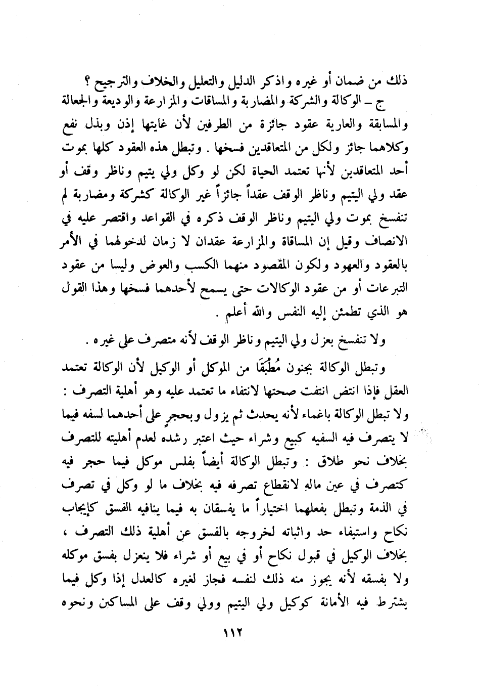 ج: الوكالة والشركة والمضاربة والمساقاة والمزارعة والوديعة والجعالة والمسابقة والعارية: عقود جائزة من الطرفين؛ لأن غايتها إذن وبذل نفع، وكلاهما جائز، ولكل من المتعاقدين فسخها. وتبطل هذه العقود كلها بموت أحد المتعاقدين؛ لأنها تعتمد الحياة؛ لكن لو وكل ولي يتيم وناظر وقف أو عقد ولي اليتيم وناظر الوقف عقدًا جائزًا غير الوكالة كشركة ومضاربة لم تنفسخ بموت ولي اليتيم وناظر الوقف ذكره في القواعد، واقتصر عليه في «الإنصاف» ، وقيل: إن المساقاة والمزارعة عقدان لا زمان لدخولهما في الأمر بالعقود والعهود، ولكون المقصود منهما الكسب والعوض وليسا من عقود التبرعات أو من عقود الوكالات حتى يسمح لأحدهما فسخها، وهذا القول هو الذي تطمئن إليه النفس. والله أعلم.