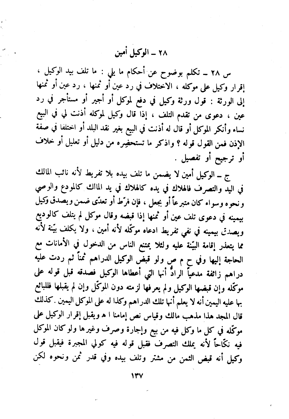 لا يصدق فيما لا يشتبه من قليل ثمن ادعى أنه باع به أو كثيره أن اشتراه ذكره المجد. المعنى أنه لا يصدق فيما يخالفه الظاهر أو يكذبه الحسّ. وإذا وكل البائع والمشتري، وعقد الوكيلان واتفقا على الثمن، واختلف الموكلان فيه، قال القاضي: يتحالف البائع والمشتري، وصحح المجد لا تحالف وأنه يُقبل قولُ الوكيلين، وإن اختلف الوكيل والموكل في رد عين أو في رد ثمنها بعد بيعها، فالقول قول وكيل متبرع؛ لأنه قبض العين لنفع مالِكها لا غيرَ كالمودع، ولا يُقبل قولُ وكيل بجعل أنه رَدَّ العين؛ لأن في قبضه نفعًا لنفسه أشبه المستعير، ويُقبل قولُ وصيٍ وعامل وقفٍ وناظره إذا كانوا مُتبرعين لا إن كانوا بجعل فلا يقبل قولهم في رد العين، ومن قلنا القول قوله فهو مع يمينه، وأجير ومستأجر ونحوه ممن قبض العين لحظة فلا تقبل دعواه الرد، وإن طلب ثمن من وكيل، فقال: لم أقبضه بعد، فأقام المشتري بيّنة عليه بقبضه ألزم الوكيل ولم يقبل قوله في رد ولا تلف؛ لأنه صار خائنًا بجحده، قاله المجد.