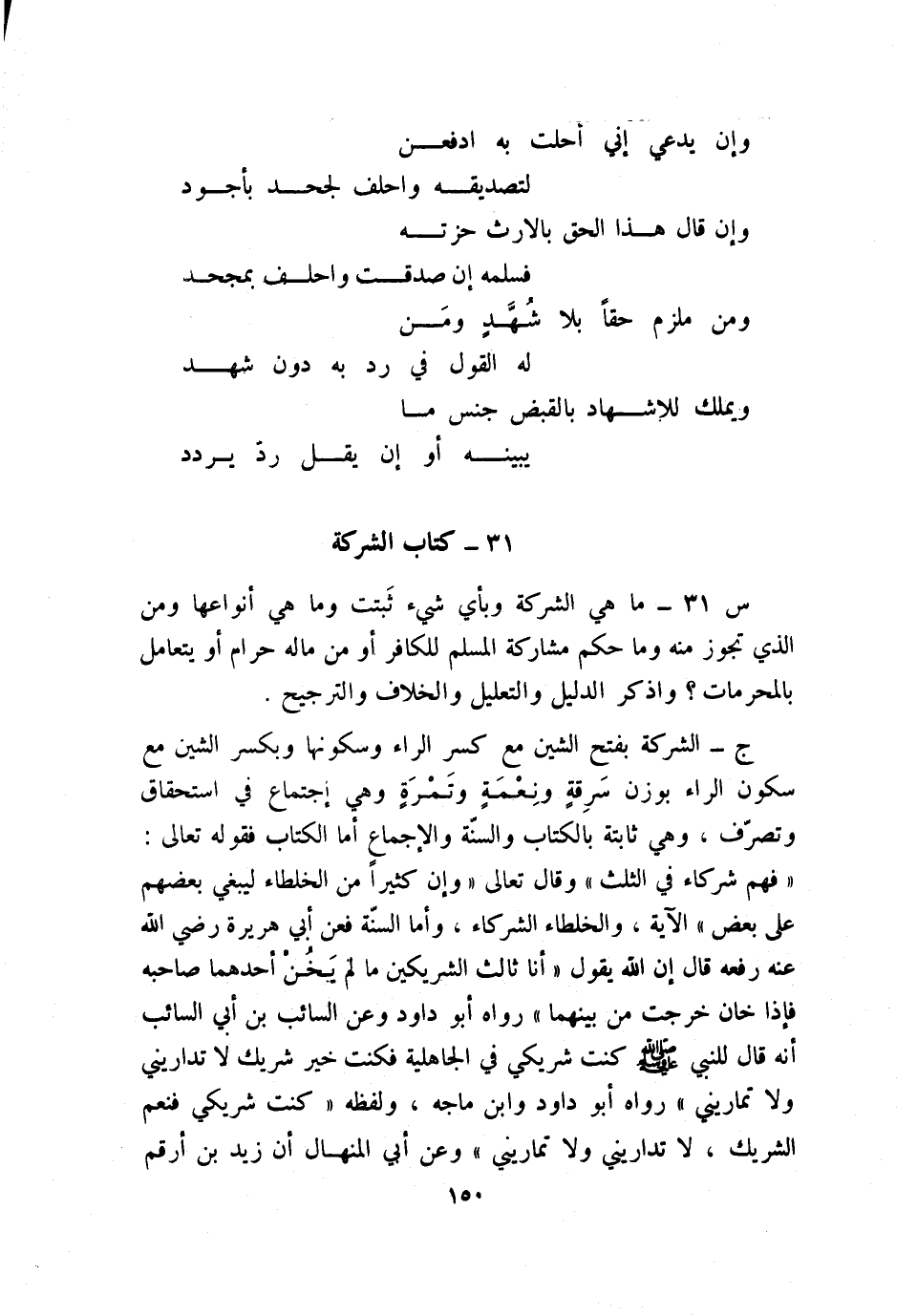 والقسم الثاني: اجتماع في تصرّف، وهي شركة العقود المقصودة هنا، وتكره شركة مسلم مع كافر كمجوسي؛ لأنه لا يؤمن معاملته بالربا وبيع الخمر وكل ما يحرم استعماله.