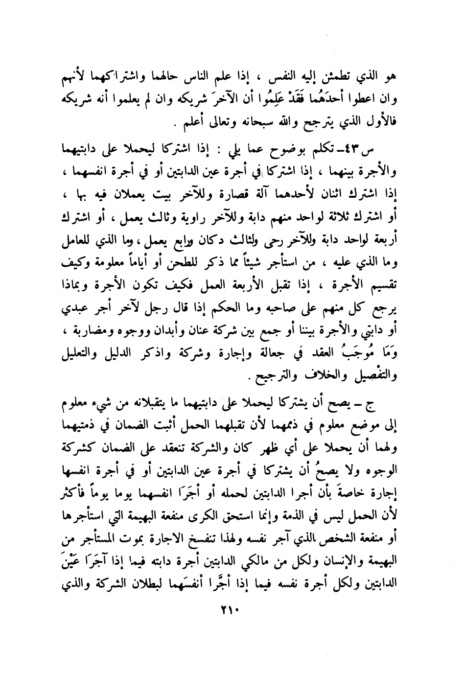 س45: ما هي المساقاة؟ ولماذا جعلت بين القراض والإجارة؟ وما الأصل فيها؟ وما الذي تصح عليه والذي لا تصح عليه؟ وما هي المناصبة؟ وما هي المغارسة؟ وما الدليل؟ وما هي المزارعة؟ ولماذا جمعت في باب واحد؟ وما الذي يعتبر للمساقاة والمزارعة؟ وما الألفاظ التي تصح بها؟ وتكلم عن إجارة الأرض بنقد أو بعرض أو بجزء، وعن ما إذا لم يزرعها المستأجر، وعن إجارة الأرض بطعام، وعن المساقاة على وَدْي النخل أو على شجر يغرسه ويعمل عليه. واذكر الدليل والتعليل والخلاف والترجيح.
