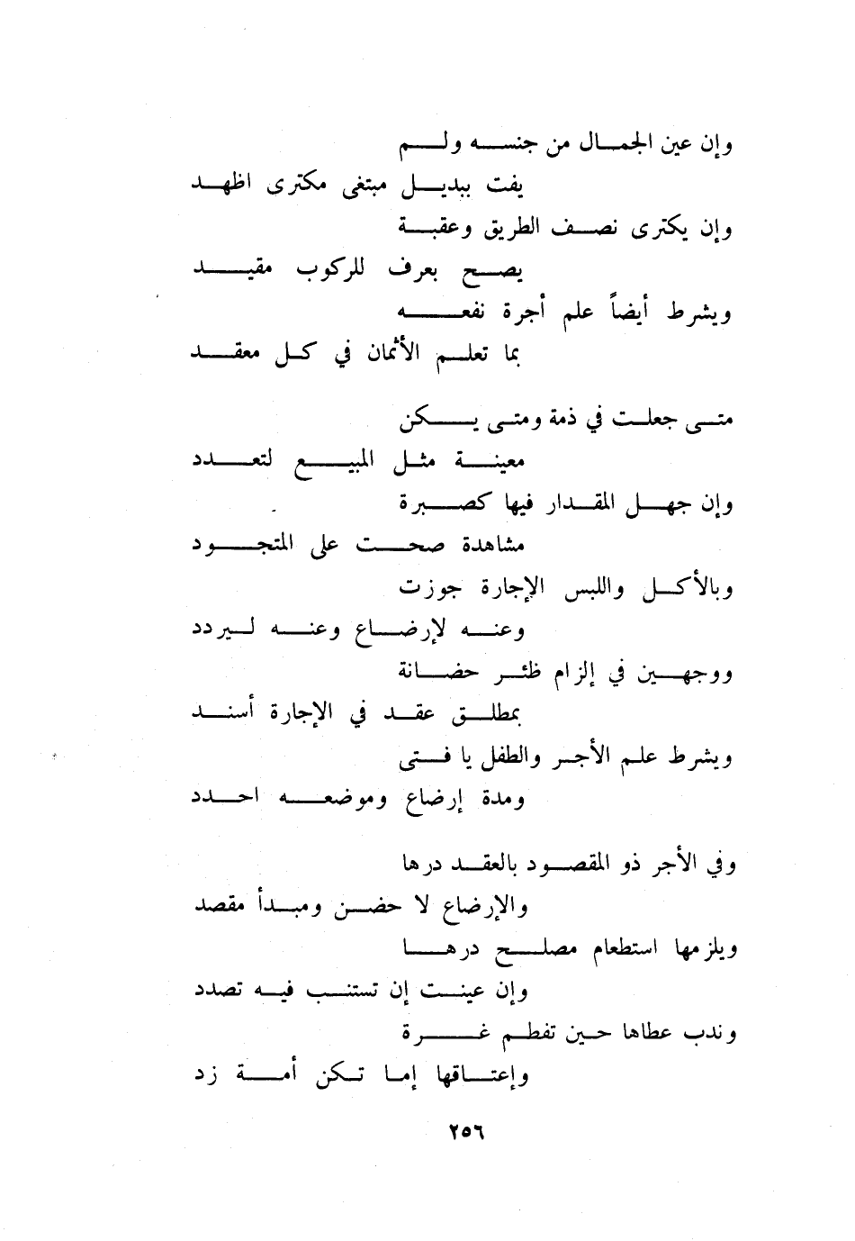 إجارته كبيعه، وكذا طير في الهواء، ولا تصح إجارة طير لحمل كتب، ولا تصح إجارة مركوب لمن يريد الخروج عليه ويترك حضور الجمعة أو الجماعة إذا كان ممن وجبت عليه، وليس بآت بها في طريقه؛ لأن تأجيره إعانة على المعصية. قال تعالى: {وَلاَ تَعَاوَنُوا عَلَى الإِثْمِ وَالْعُدْوَانِ} ، ومن كان له مال حلال وله مال حرام، واستأجر أجيرًا فلا يجوز له أن يعطيه أجرته من المال الحرام، وإنما يعطيه من الحلال؛ فإن أعطاه ولم يشعر أنه من الحرام جاز له التصرف ولا إثم عليه وإثمه على المستأجر؛ لأنه غره. 5- لمستأجر فلا يصح استئجار دابة لركوب مؤجر وذلك الذي يصح استئجاره ككتاب حديث أو فقه أو شعر مباح أو لغة أو صرف لنظر وقراءة ونقل وتجويد خط بأن كان به خط حسن يكتب عليه ويتمثل منه؛ لأنه تجوز إعارته لذلك فجائز إجارته وإجارة المصحف مبنية على حكم بيعه، وتقدم في أول الجزء الرابع وكدار تجعل مسجدًا يصلى فيه، وإذا تمت المدة بقي بأجرة المثل إن وافق المؤجر وكدار تسكن؛ لأنه نفع مباح مقصود وكاستئجار حائط لحمل خشب معلوم وكبئر يستقي منها أيامًا معلومة؛ لأن فيها نفعًا مباحًا بمرور الدلو والماء يؤخذ على أصل الإباحة وكحيوان لصيد كفهد وباز وصقر وكقرد لحراسة مدة معلومة؛ لأن فيه نفعًا مباحًا، وتجوز إعارته لذلك، ولا تصح إجارة كلب وخنزير مطلقًا؛ لأنه لا يصح بيعهما، وكاستئجار شجر لنشر عليه وجلوس بظله؛ لأنه منفعة مباحة مقصودة كالحبال والخشب، وكما لو كانت مقطوعة وتقدم في الصلح، ولغير مالك جدار استناد إليه، وإسناد قماشه وجلوسه بظله بلا إذن مالكه.
