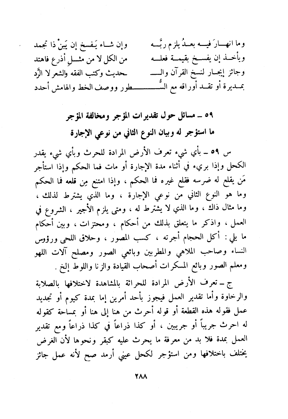 المساجد؛ ولأن الحاجة تدعو إلى الاستنابة في الحج عمن وجب عليه، وعجز عن فعله، ولا يكاد يوجد متبرع بذلك فيحتاج إلى بذل الأجرة فيه، واختار هذا القول الشيخ تقي الدين، وقال: لا يصح الاستئجار على القراءة وإهداؤها إلى الميت؛ لأنه لم ينقل عن أحد من الأئمة الإذن في ذلك، وقد قال العلماء: إن القارئ إذا قرأ لأجل المال فلا ثواب له، فأي شيء يُهدى إلى الميت وإنما يصل إلى الميت العمل الصالح والاستئجار على مجرد التلاوة، ولم يقل به أحد من الأئمة وإنما تنازعوا في الإستئجار على التعليم والمستحب أن يأخذ الحاج عن غيره ليحج لا أن يحج ليأخذ فمن أحب إبراء ذمة الميت أو رؤية المشاعر يأخذ ليحج ومثله كل رزق أخذ على عمل صالح ففرق بين من يقصد الدين فقط والدنيا وسيلة أو عكسه والأشبه أن عكسه ليس له في الآخرة من خلاق. قال: وحجه عن غيره ليستفضل ما يوفي دينه الأفضل تركه لم يفعله السلف، ويتوجه فعله للحاجة. قال صاحب «الفروع» : ونصره ونقل ابن هانئ فيمن عليه دين وليس له ما يحج أيحج عن غيره ليقضي دينه؟ قال: نعم، والذي يترجح عندي قول من قال بصحته للحاجة. والله سبحانه وتعالى أعلم.