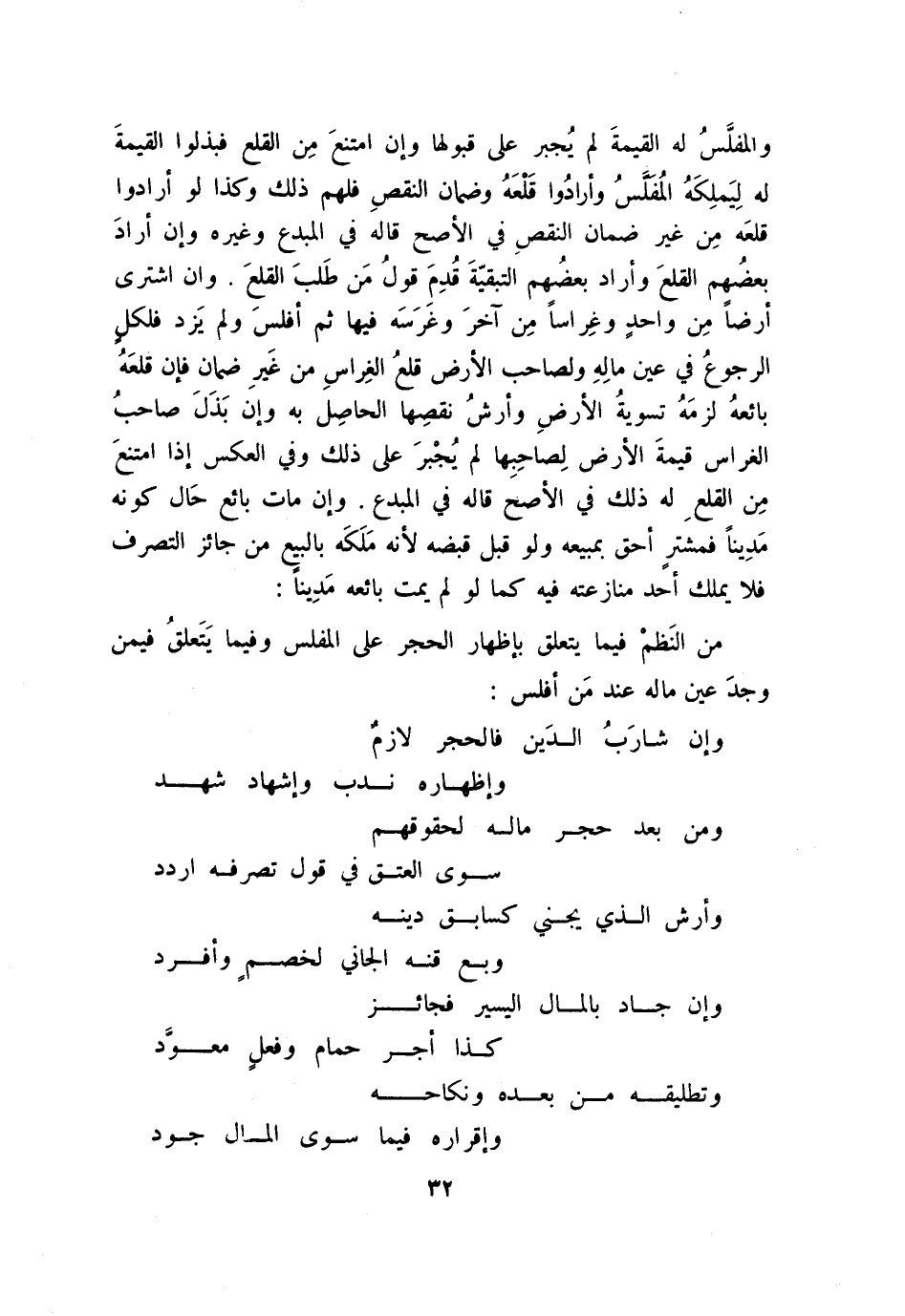من النظم فيما يتعلق بإظهار الحجر على المفلس، وفيما يتعلق فيمن وجد عين ماله عند من أفلس:
