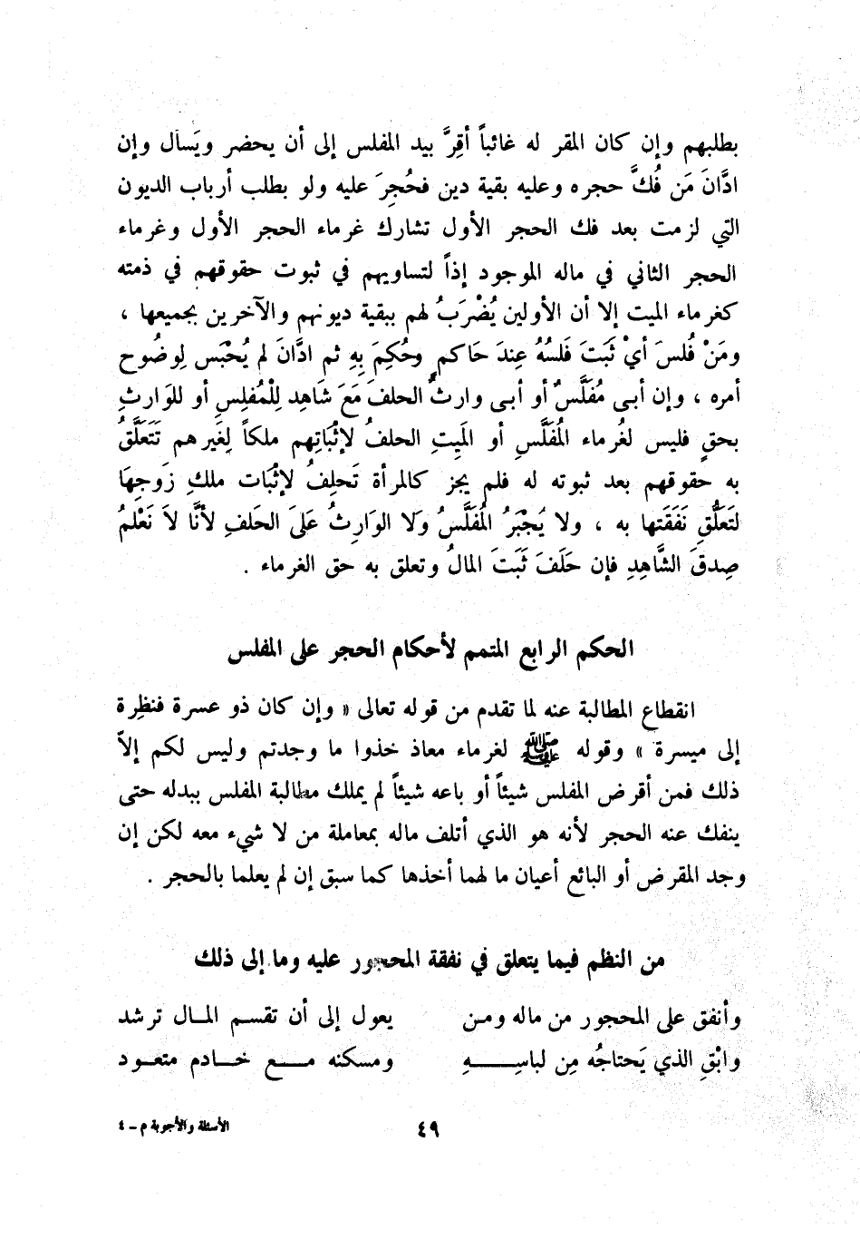 الحكم الرابع المتمم لأحكام الحجر على المفلس